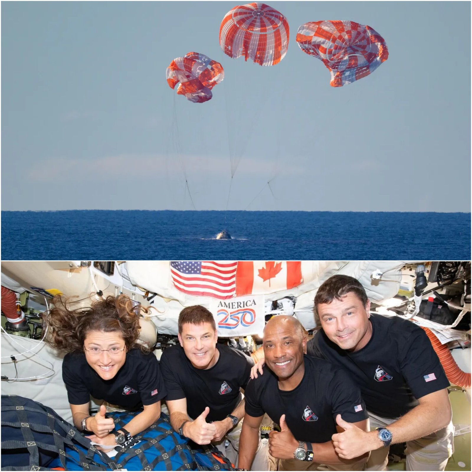 Four astronauts from NASA’s Artemis II mission returned safely after a complex re-entry and splashdown in the Pacific Ocean. The Orion capsule faced extreme heat and a brief signal loss during descent. Commander Reid Wiseman said, “Houston, Integrity here. We hear you loud and clear” after contact resumed. Parachutes deployed smoothly, leading to what NASA called a “perfect” landing. The crew — Victor Glover, Christina Koch and Jeremy Hansen — are recovering on a naval ship. NASA said the mission helps prepare for future human landings on the Moon. (PC: BBC)