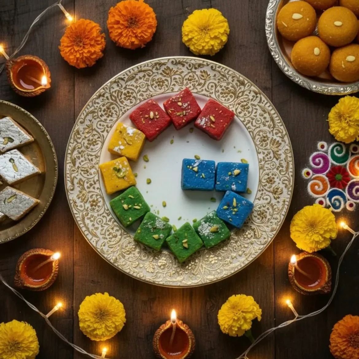 Alphabet and Google CEO Sundar Pichai celebrated Diwali with a creative Instagram post featuring colorful barfis arranged as the Google logo. The sweets in red, yellow, green, and blue color mimicked Google's iconic colors, surrounded by ladoos, flowers, and rangoli. "Obviously this is the only way we serve barfi in my house," Pichai captioned, wishing everyone "a Happy Diwali filled with light, joy, and your favorite festive treats (Google themed or otherwise!)." The post quickly went viral, drawing festive greetings and reactions. Users commented "Matlab barfi khilani hi hai Google wali" and "Happy Deepavali Sundar!" This continues Pichai's tradition in 2024 where he shared a Google-themed Diya photograph.