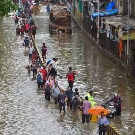 Heavy rains lashed Mumbai and its suburbs on Wednesday, with over 100 mm of rainfall recorded in several areas within five hours. The downpour caused severe waterlogging, disrupted local train services, and diverted 14 flights. In Andheri, a woman drowned in an overflowing drain, resulting in one fatality. While rain intensity eased later at night, more showers are forecasted in the coming days. Schools were closed on Thursday as a precaution. By morning, floodwaters had receded, and vehicle movement returned to normal. Flight operations at Mumbai airport also resumed after a brief suspension due to the weather.