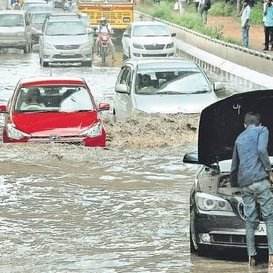 Bengaluru was hit by heavy rain on Thursday evening and Friday morning, causing widespread flooding and disruption to normal life. Several areas of the city were under water for hours, affecting main roads and prompting police to redirect traffic. The flooding also affected domestic flight services at the Kempegowda International Airport (KIA), with water leakage in Terminal 2 causing inconvenience to passengers and impacting flight operations. At least 17 flights were diverted to Chennai due to the flooding. The airport authorities have confirmed the incident and are working to restore normal operations.