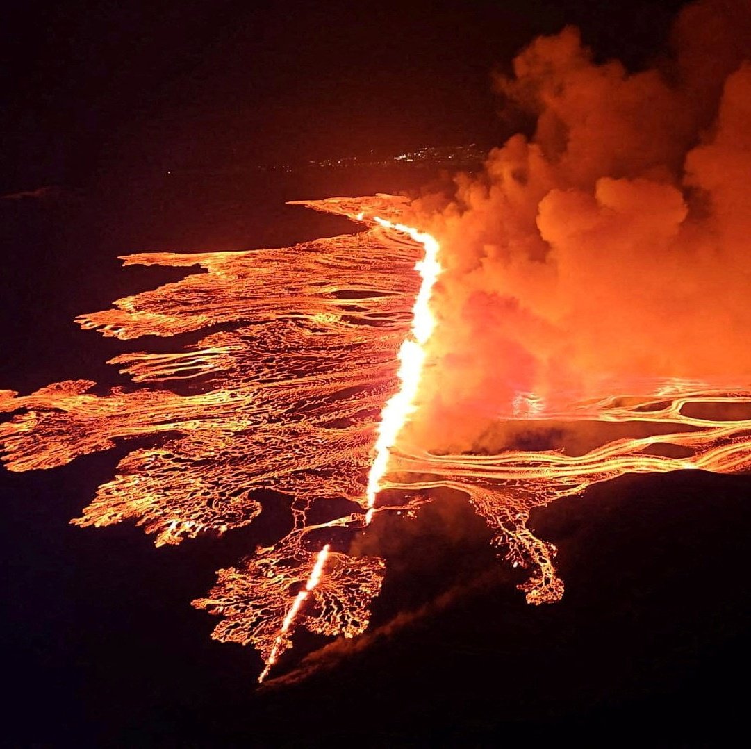 🌋 A powerful eruption of a #volcano on the Reykjanes Peninsula in #Iceland marks the fourth in four months. Around 80 earthquakes have been recorded, with the crack reaching 3 km in length.