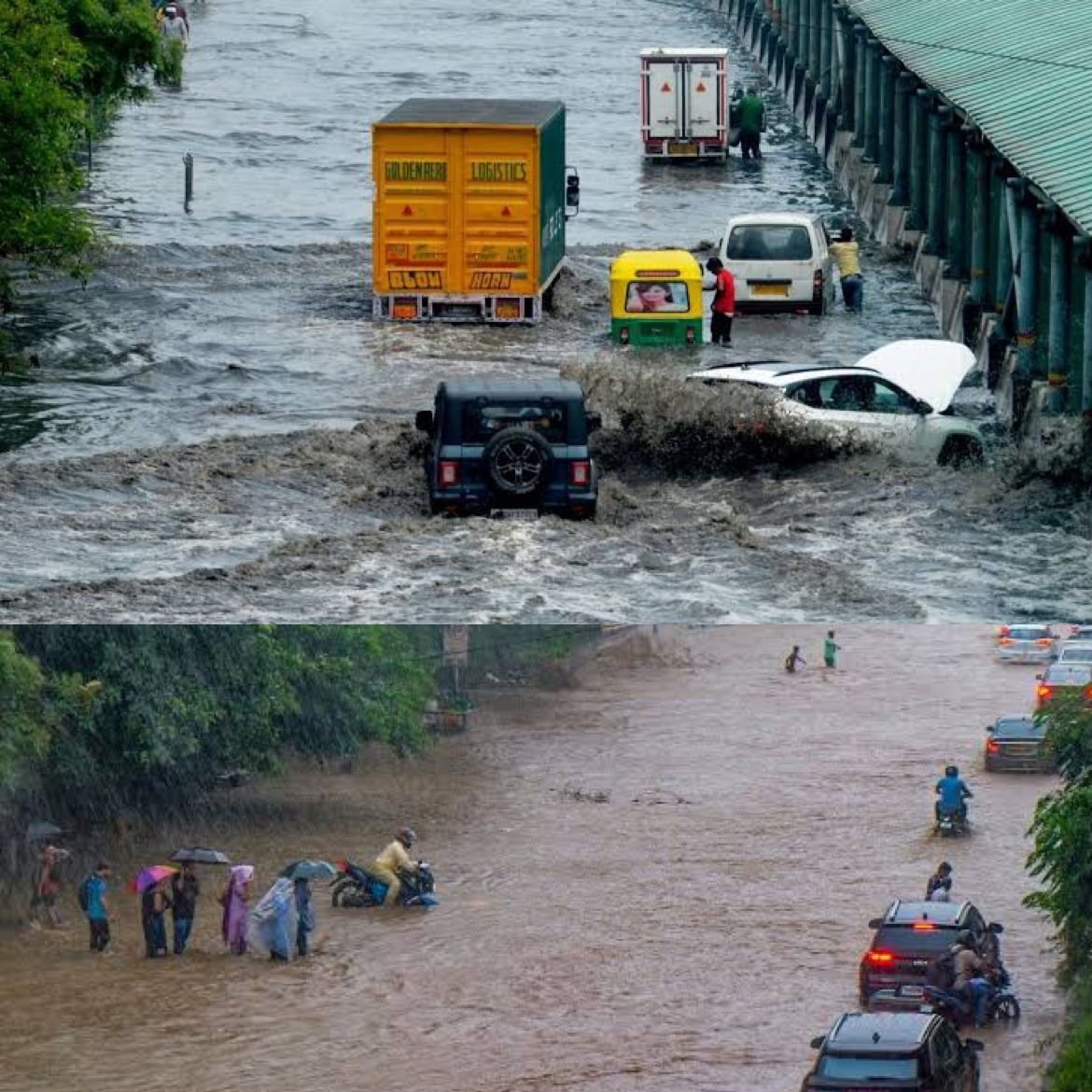 Delhi faced rising flood danger on Tuesday as the Yamuna crossed the danger mark of 205.33 metres and reached 205.68 metres by morning. Water entered homes in low-lying areas, forcing people into relief camps. Officials warned levels could rise to 206.50 metres by evening as water continued to flow from Haryana’s Hathnikund barrage. Authorities closed Loha Pul for traffic from 5 pm. Meanwhile, Gurugram received over 100 mm rain in four hours on Monday, flooding Hero Honda Chowk and the Dwarka Expressway. An orange alert was issued, schools moved online, and offices were asked to allow work-from-home. (PC: India Today)