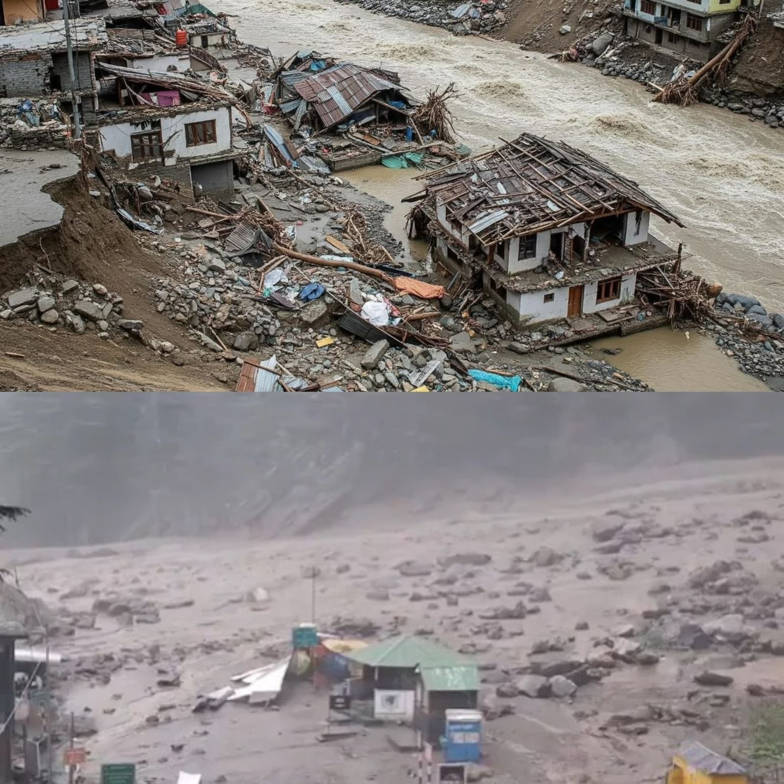 A horrifying cloudburst in Dharali, Uttarkashi, has triggered deadly flash floods, killing at least four people and leaving several others missing or buried under debris. Viral videos show locals running for safety as powerful water currents sweep them away, with one clip capturing a man crawling through slush and rubble. The disaster struck around 1:45 pm, devastating homes, hotels, and markets in high-altitude villages en route to Gangotri. Uttarkashi District Magistrate confirmed the death toll, which may rise. Home Minister Amit Shah has deployed ITBP and NDRF teams for rescue operations. Locals described the destruction as total, with entire villages and marketplaces washed away in minutes.
