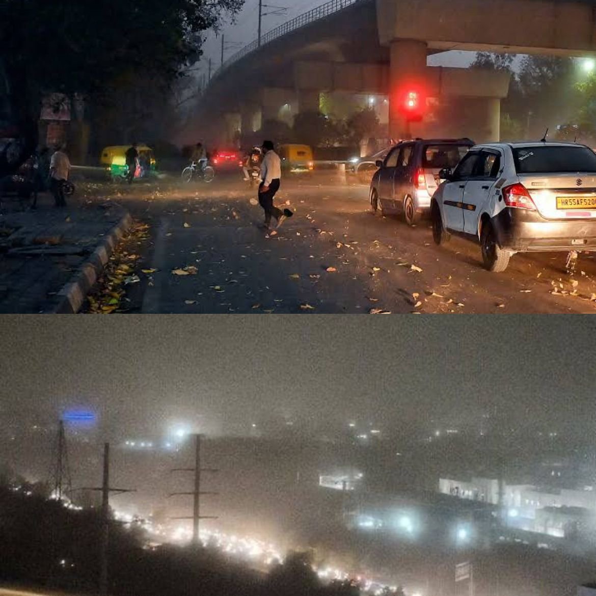 A fierce dust storm swept through Delhi and the NCR on Wednesday evening, bringing much-needed relief from scorching temperatures but causing widespread disruption. The storm, which struck around 8 PM, uprooted trees, damaged metro infrastructure, and delayed flights at IGI Airport. Wind speeds soared to 79 kmph in parts of the city. Metro services on the Red, Yellow, and Pink lines were temporarily halted. A tragic incident occurred on Lodhi Road, where a man in a wheelchair was killed by a falling electric pole. The IMD attributed the storm to a cyclonic circulation over Haryana, with more unstable weather expected. (PC: HT)