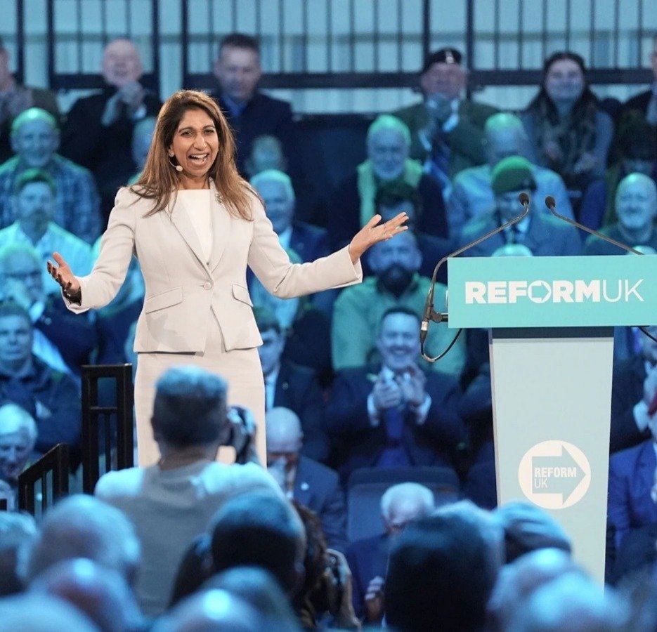 Former UK Home Secretary Suella Braverman, of Indian origin, has defected from the Conservative Party to join Nigel Farage's Reform UK party. The surprise announcement was made at a Reform UK rally for party activists in London on January 27. Braverman becomes the third Conservative MP to quit the Tories and join Reform UK within just over a week, marking a significant blow to the Conservative Party. The BBC reported that Farage himself announced Braverman's defection at the event. Her departure continues a troubling trend for the Conservatives, as Reform UK gains momentum by attracting high-profile former Tory ministers and MPs to Farage's populist platform. (PC: AP)