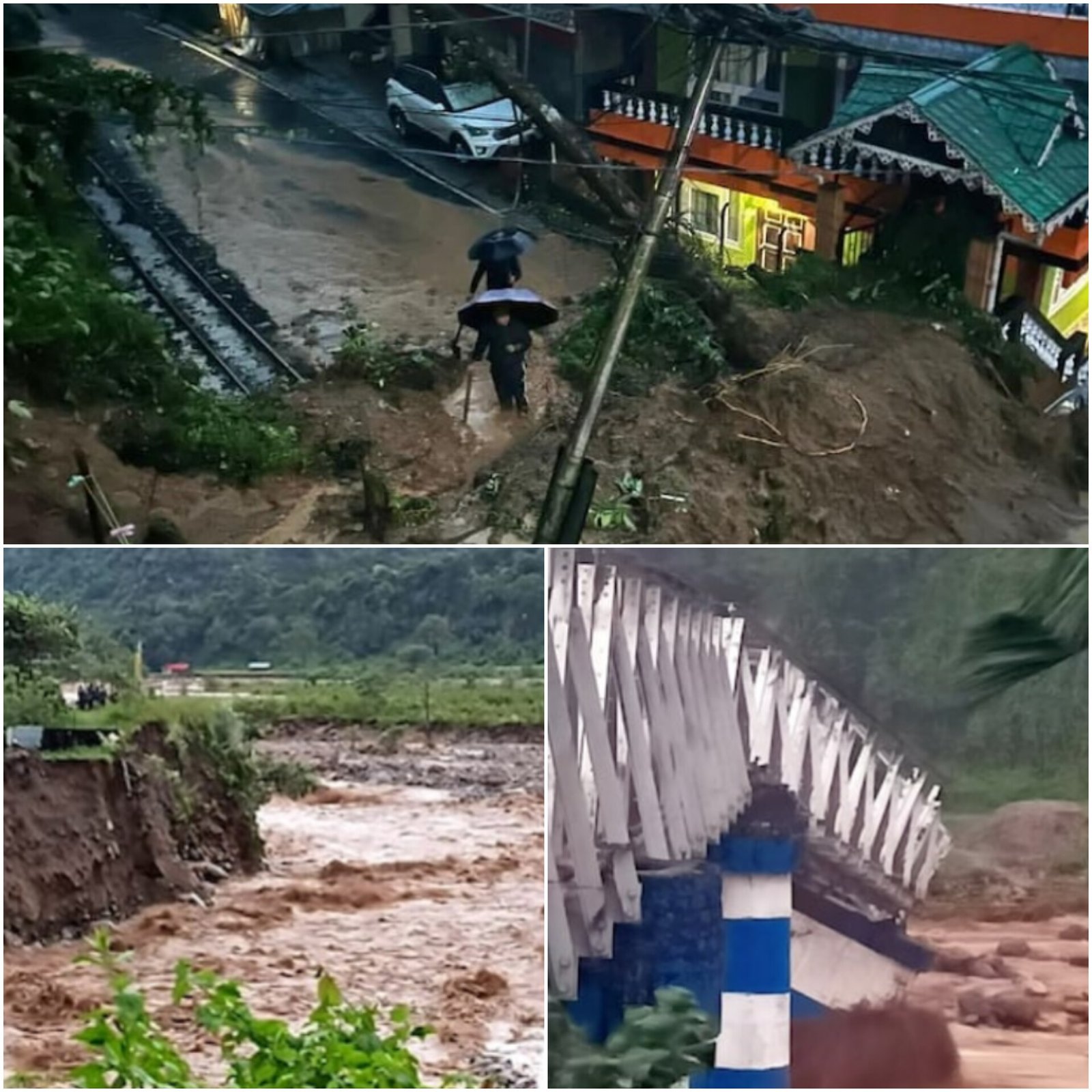 At least 6 people died after a bridge collapsed in Darjeeling’s Mirik area following heavy rain and landslides. The Dudia Iron Bridge, which connects Mirik and Kurseong, broke apart, cutting off key roads. Landslides were also reported near Hussain Khola on National Highway 110. The India Meteorological Department (IMD) has issued a red alert for North Bengal, warning of extremely heavy rain in Darjeeling, Kalimpong, Jalpaiguri, Cooch Behar, and Alipurduar till Sunday. Rivers like Teesta and Mal are flowing above danger levels, causing flood-like conditions. Several areas in Jalpaiguri’s Malbazar have been submerged under water. (PC: India Today)