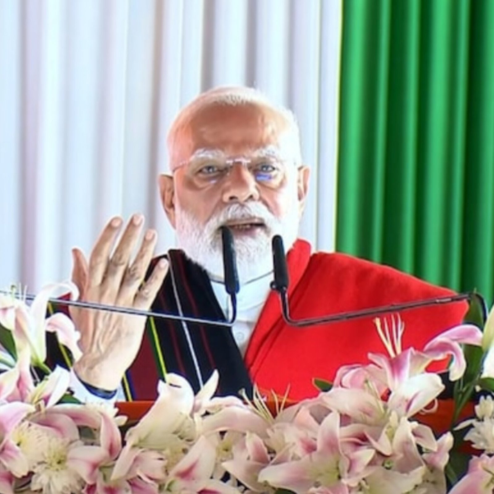 Prime Minister Narendra Modi visited Manipur on Saturday, his first trip since the 2023 ethnic violence that killed over 200 people. Speaking in Churachandpur, he urged all groups to give up violence and work for peace, saying, “I am with you.” Modi announced a ₹3,000 crore package, including ₹500 crore for displaced families and 7,000 new houses. He laid the foundation for projects worth ₹7,000 crore, covering roads, railways, airports, and IT development. Modi said the Jiribam–Imphal railway and Imphal airport will boost connectivity. He promised support for tribal development, women’s empowerment, and rebuilding Manipur’s future. (PC: India Today)