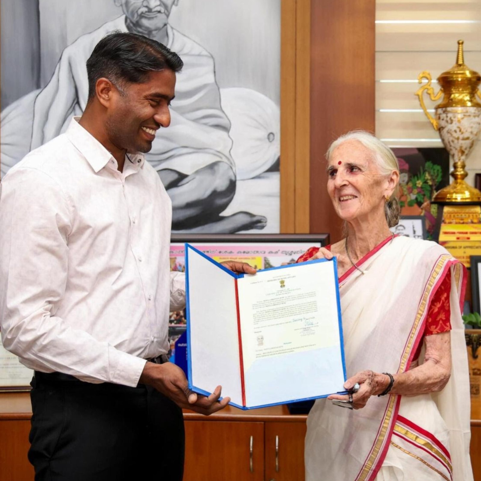 Writer and photographer Pepita Seth has become an Indian citizen at the age of 84, formalising her long bond with Kerala. She received the citizenship document from Thrissur District Collector Arjun Pandian at a ceremony on February 6. Known for documenting Kerala’s rituals, temples and art, Seth is often called the State’s “adopted daughter.” She said, “I feel immensely proud to become an Indian at the age of 84,” and called India her true home. Born in Britain, she settled in Thrissur and produced major cultural works on Kerala. She was awarded the Padma Shri in 2012 for her contribution to Indian art and heritage. (PC: The Hindu)