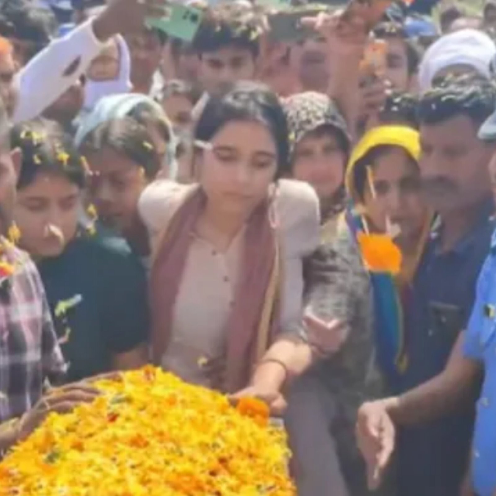 Flight Lieutenant Siddharth Yadav, 28, lost his life when his Jaguar fighter jet crashed near Jamnagar, Gujarat. Just 10 days earlier, he had gotten engaged to Saniya, and their wedding was set for November. At his funeral, a grieving Saniya wept, saying, “Baby, you didn’t come to take me. You promised.” A viral video shows her pleading, “Let me see his face one more time.” Yadav’s last rites were held in his Haryana village with full military honors. He came from a family of military officers. The Indian Air Force has launched an inquiry into the crash. (PC: News18)