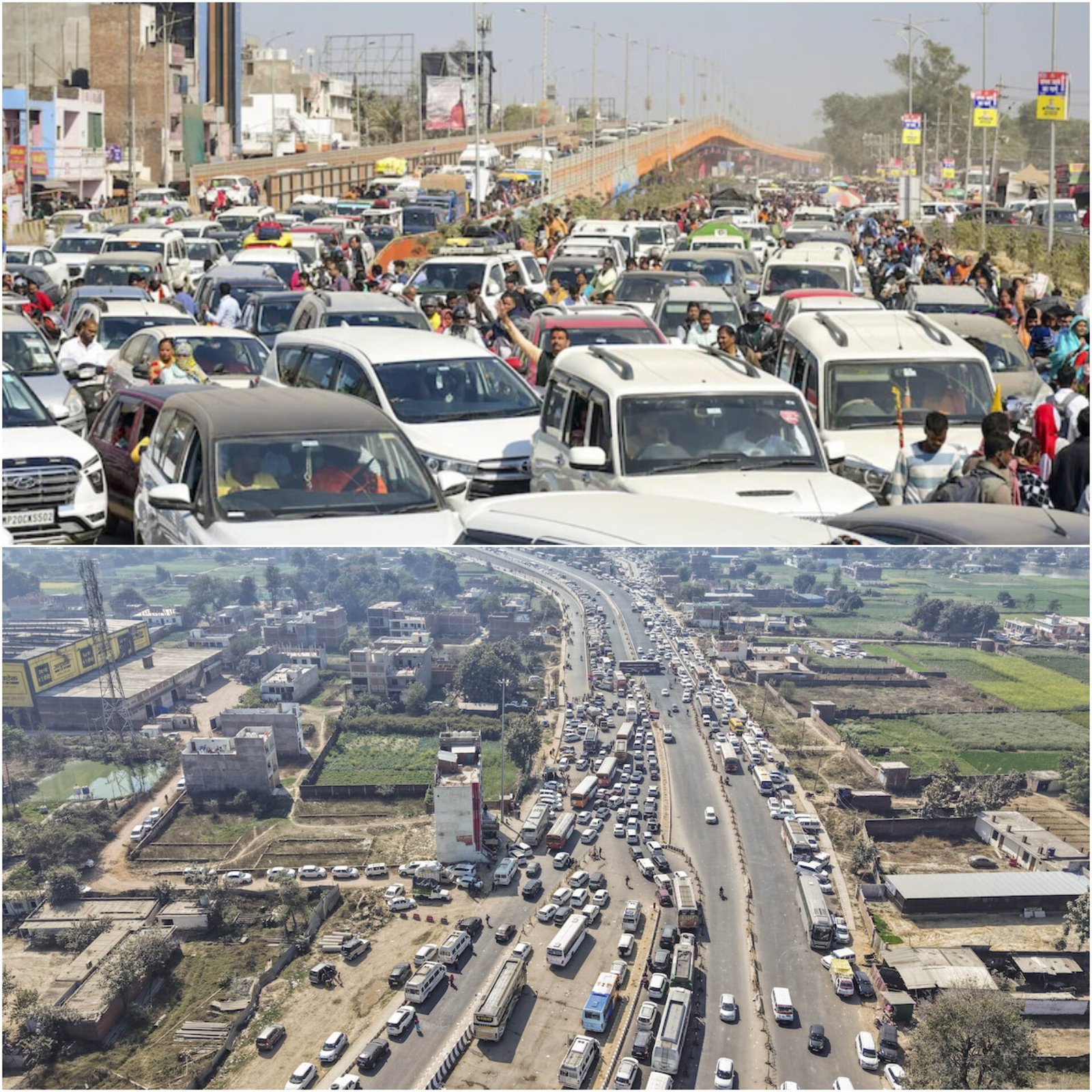 A massive 300 km-long traffic jam has paralyzed Maha Kumbh in Prayagraj, preventing pilgrims from reaching Triveni Sangam for the holy dip. The Prayagraj Sangam railway station has been closed until February 14 due to overcrowding. Samajwadi Party chief Akhilesh Yadav criticized the UP government, calling it a failure, and demanded toll-free travel for devotees. Pilgrims reported being stuck for hours, with some walking to the site. Authorities have enforced a single-direction traffic system at Prayagraj Junction. Devotees have raised serious concerns over mismanagement, calling for urgent intervention.