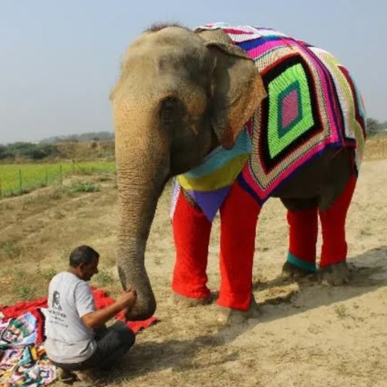 Villagers in northern India are knitting massive sweaters to protect rescued elephants from the winter chill. The initiative, led by the Wildlife SOS Elephant Conservation and Care Center, helps 20 elephants previously abused in circuses and logging camps. "It's important to keep our elephants protected from the bitter cold," said Wildlife SOS co-founder Kartick Satyanarayan, noting their vulnerability to ailments like pneumonia. The colorful, hand-knit garments ensure the animals stay warm and healthy. This compassionate effort highlights India's commitment to wildlife welfare and conservation, providing comfort to the gentle giants during the harsh winter.