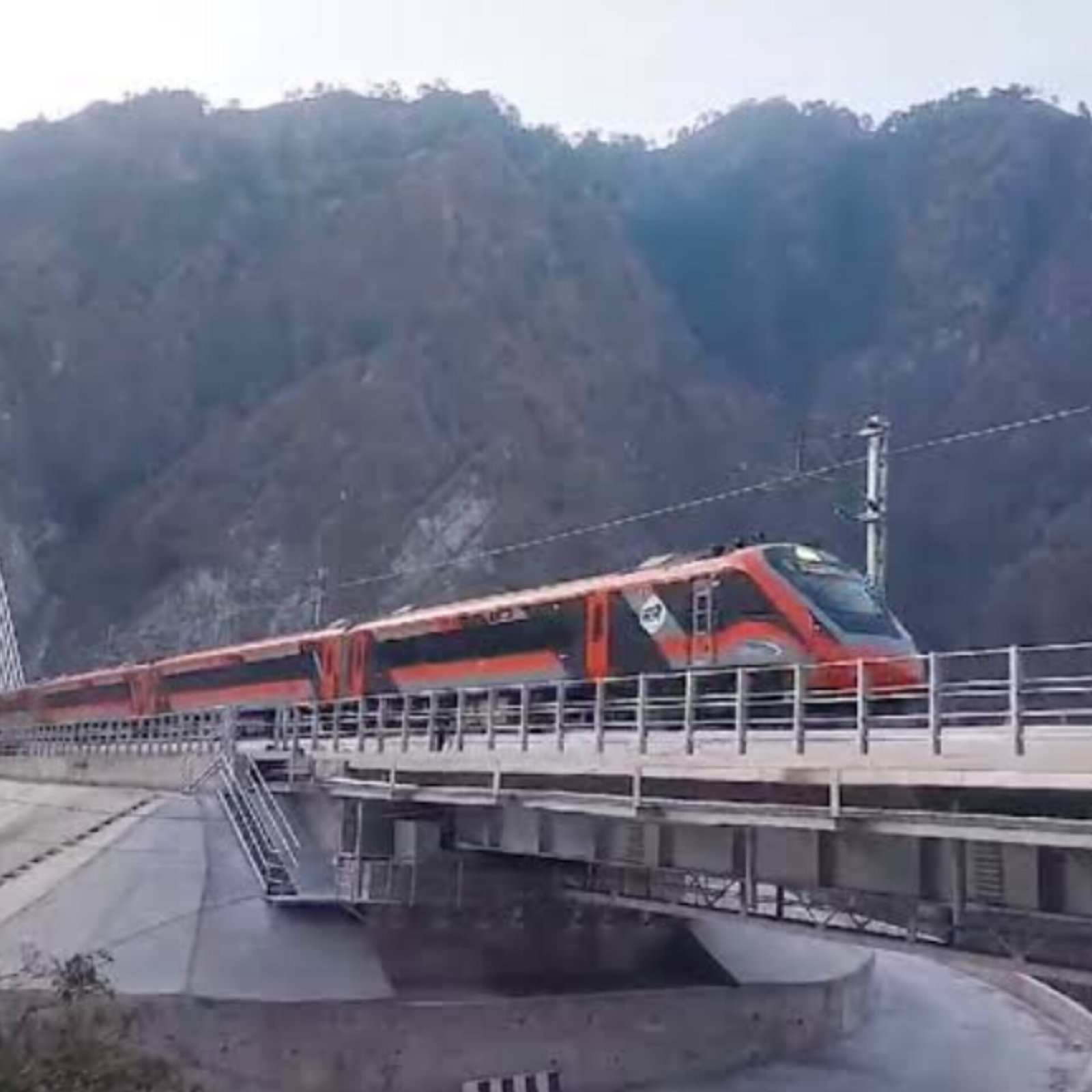 The Vande Bharat Express completed its trial run on the world’s highest railway bridge over the Chenab River in Jammu and Kashmir, marking a historic milestone. The train, specially designed for extreme weather conditions, connects Katra to Srinagar and features advanced heating systems, defrosting windshields, and climate-adaptive brakes. Covering the Udhampur-Srinagar-Baramulla Rail Link, the trial run passed through engineering marvels like the Anji Khad and Chenab bridges. Northern Railway Chief Saqib Yousuf called it a "historic step," reflecting the vision to integrate Kashmir into the national rail network. Prime Minister Modi is expected to flag off the train soon.