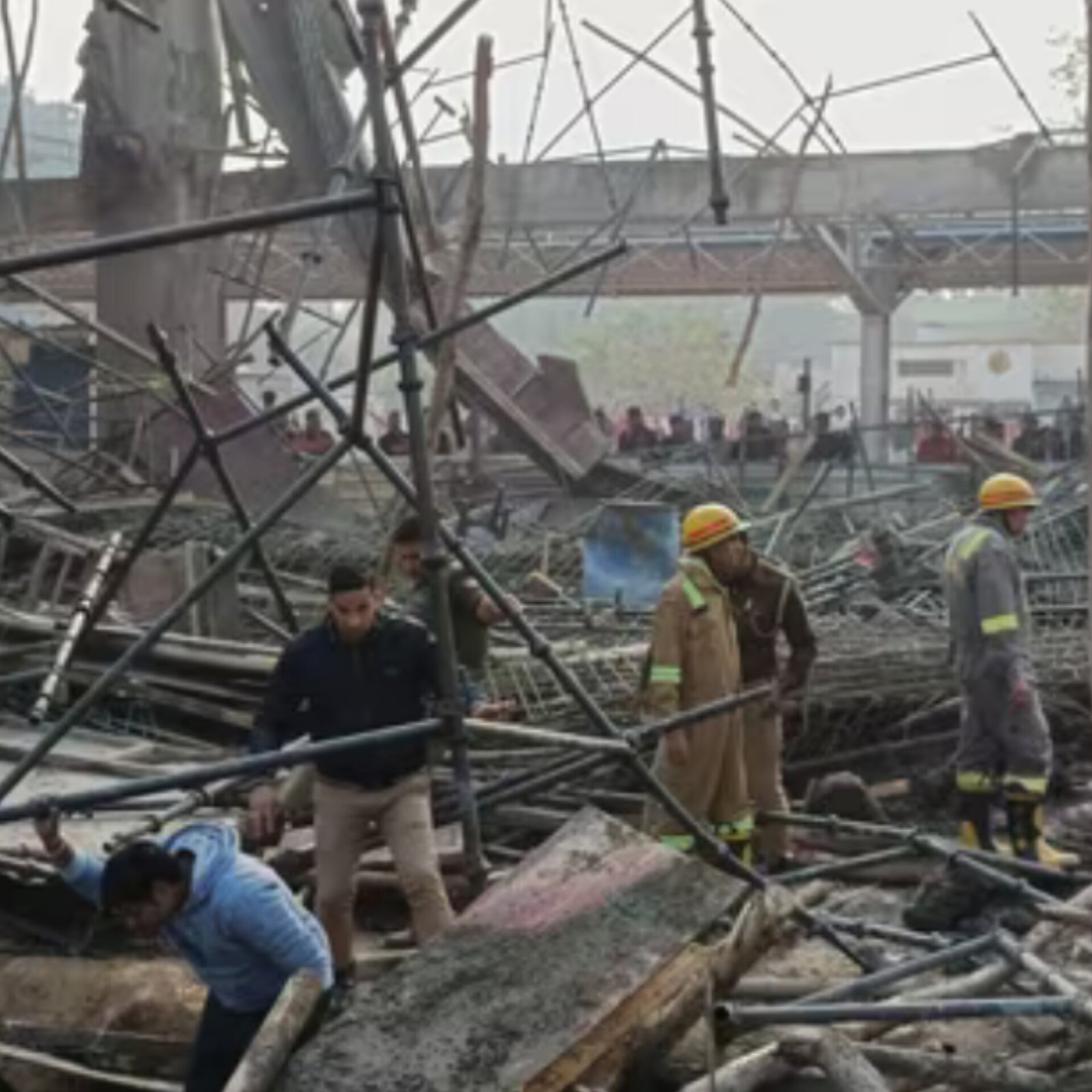 A ceiling slab collapsed at the under-construction Kannauj railway station on Saturday morning, trapping several workers and staff under the debris. The building was being renovated under the Amrit Bharat scheme. About 40 people were on-site, and 23 have been rescued so far. Rescue teams, including SDRF, GRP, RPF, and local police, are working to save those trapped. Injured individuals have been taken to the hospital. The incident caused panic, and locals rushed to help but were unable to clear the heavy debris. Efforts are ongoing to ensure everyone's safety.