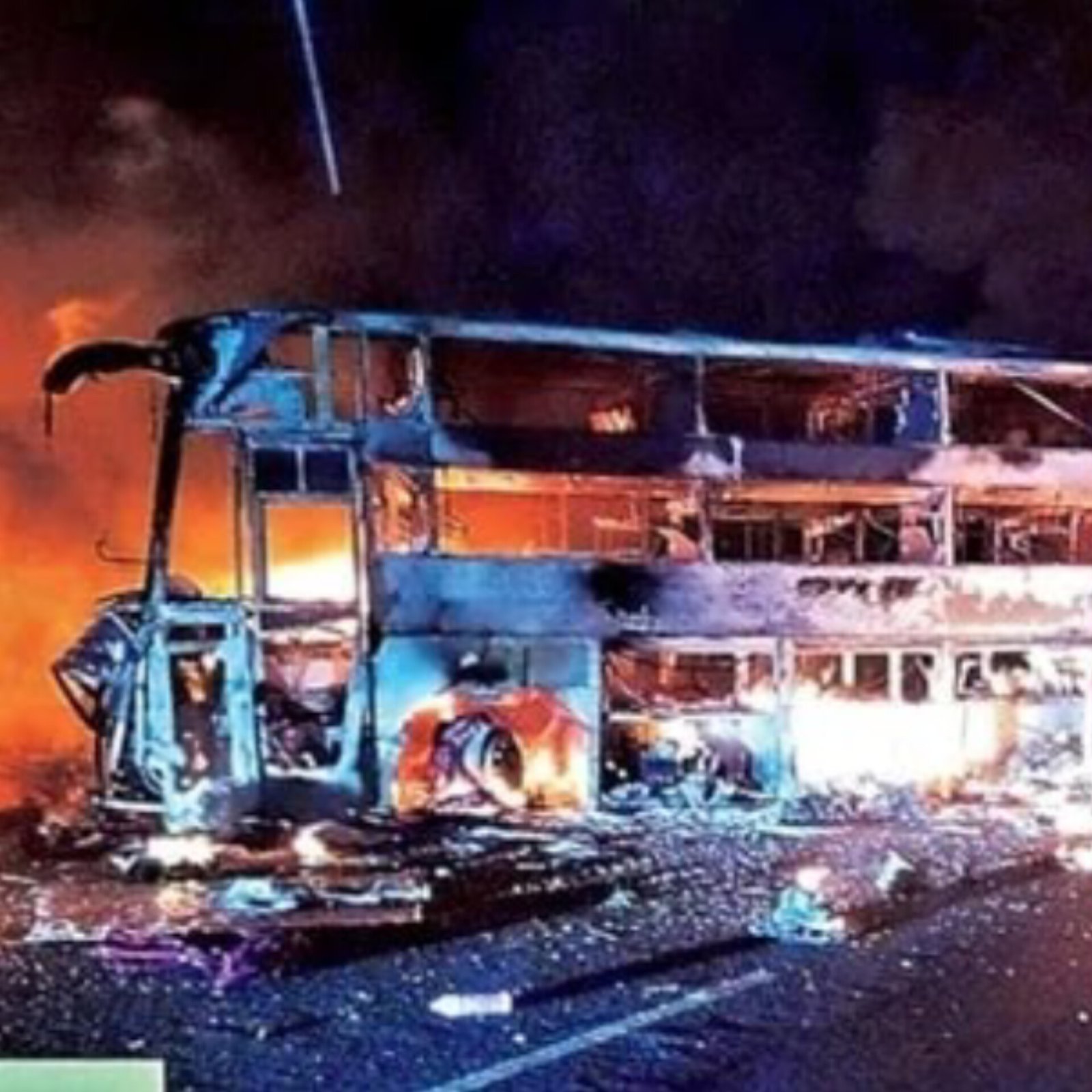 In the early hours of Thursday, a private bus travelling from Nellore to Hyderabad suffered a tyre burst, lost control, jumped the median and collided head-on with an oncoming container truck near Shirivellametta in Nandyal district of Andhra Pradesh. The impact caused a massive fire that engulfed both vehicles, killing the bus driver, the truck driver, and the truck cleaner, all charred beyond recognition. About 36 passengers were on board; several were injured, with more than 10 sustaining burn or jump-related injuries and taken to Nandyal Government Hospital. A passing DCM driver broke windows to help passengers escape safely. Police have registered a case and launched an investigation. (PC: HT)