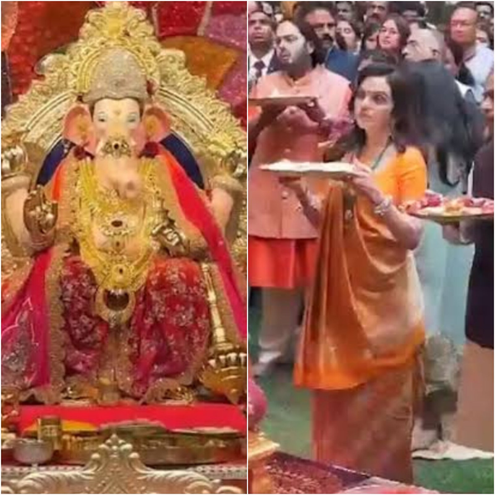 The Ambani family began Ganesh Chaturthi celebrations at their Mumbai residence, Antilia, with a grand ceremony on Friday. Mukesh Ambani, along with Anant Ambani and wife Radhika Merchant, welcomed the Lord Ganesh idol, dubbed "Antilia cha Raja," amid traditional chants. The family also donated a 20kg gold crown worth ₹15 crore to Mumbai's iconic Lalbaugcha Raja Ganesh idol. The celebrations, a long-standing tradition for the Ambanis, continue to attract attention for their grandeur. Security across Mumbai has been tightened as the 10-day Ganesh festival begins.