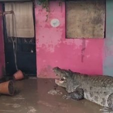 In Vadodara, India, a 10-foot crocodile was rescued from a residential area after flooding from the Vishwamitri River drove the reptile into the home. The rescue team successfully captured and caged the crocodile, later handing it over to the Forest Department for further care. The heavy rainfall has caused multiple crocodile sightings in the city, prompting authorities to take swift action to ensure public safety. The incident highlights the impact of flooding on wildlife and the need for prompt response to mitigate risks to both humans and animals. The situation is being closely monitored by local authorities.