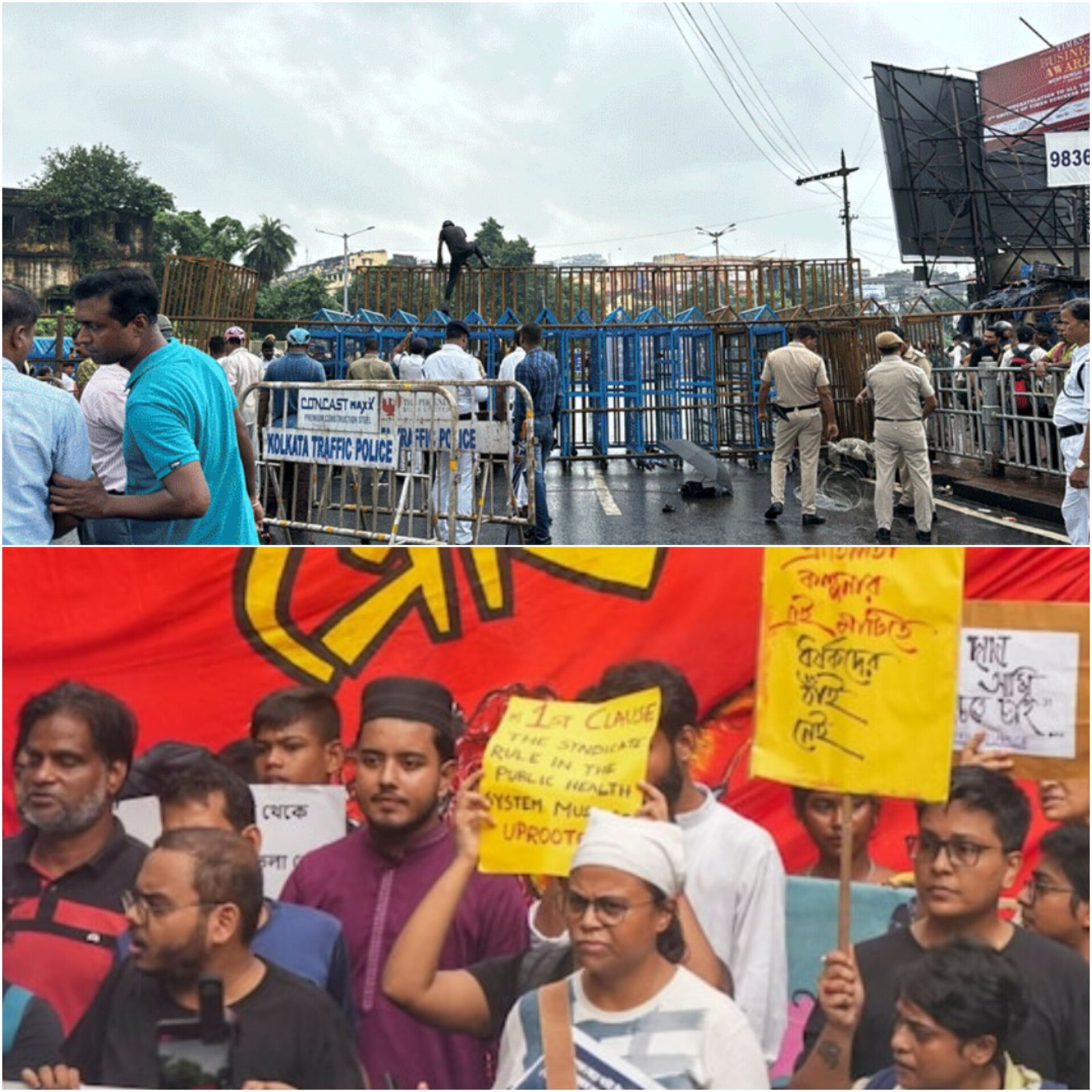 Kolkata is under intense security as over six thousand police personnel were deployed before the 'Nabanna Abhijan' protest, led by the Paschimbanga Chhatra Samaj, demanding Chief Minister Mamata Banerjee's resignation following the rape and murder of a doctor at RG Kar Hospital. Four individuals were arrested for allegedly planning violence. Police implemented a three-layer security system at Nabanna, with barricades and oil-coated barriers to prevent protesters from scaling them. Drones, robocops, and anti-riot vehicles are on standby as law enforcement closely monitors the situation.