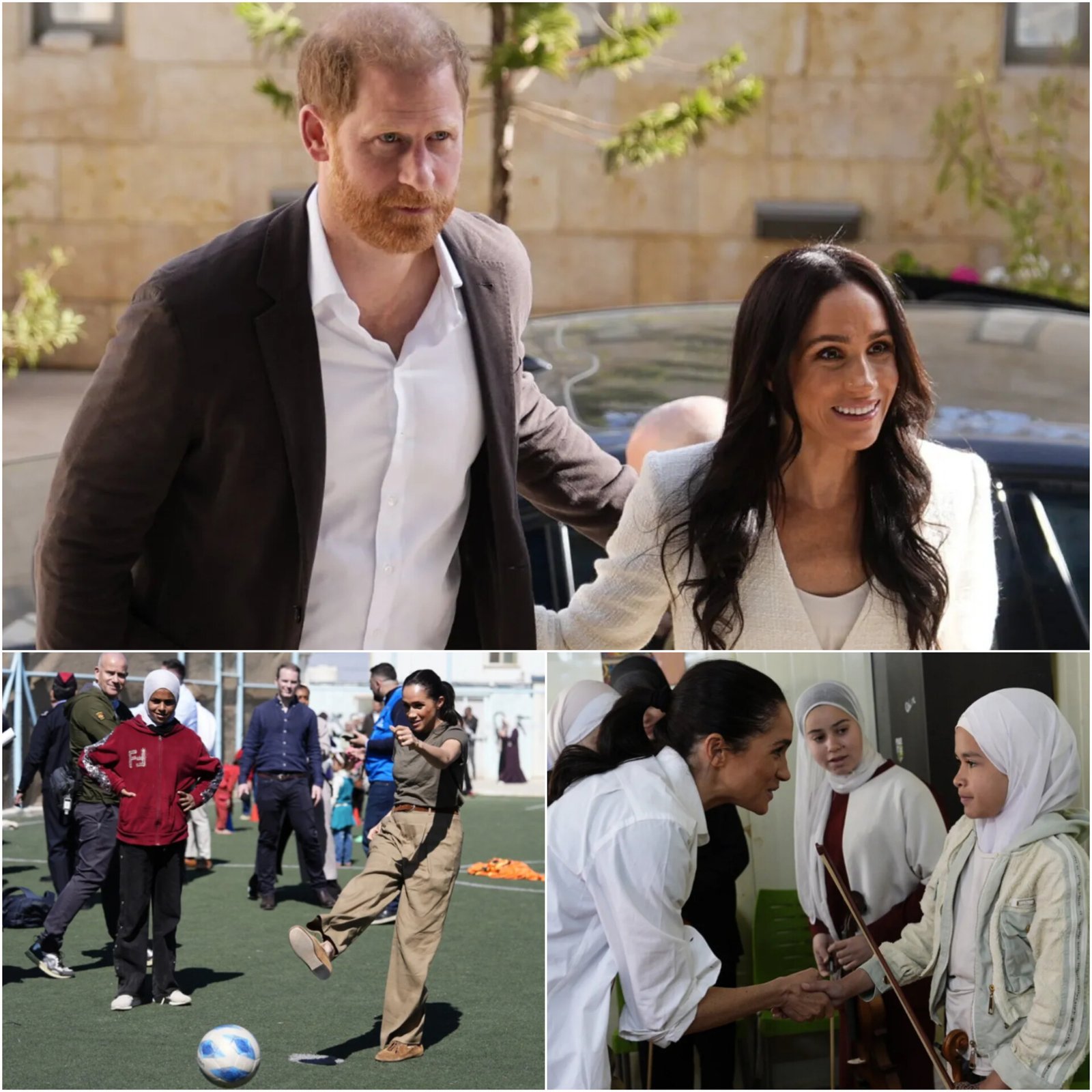 Prince Harry and Meghan visited a refugee camp and hospital in Jordan as part of a two-day trip to the Middle East. The Duke and Duchess of Sussex arrived in Amman at the invitation of World Health Organization chief Tedros Adhanom Ghebreyesus. They met children at the Za’atari refugee camp and visited a youth centre run by Questscope. The couple joined music classes and played football with young people. They also attended a WHO roundtable with UN officials and donors. The visit aims to highlight support for communities affected by conflict and displacement. The couple are also expected to meet health workers and aid teams in Jordan. (PC: BBC)