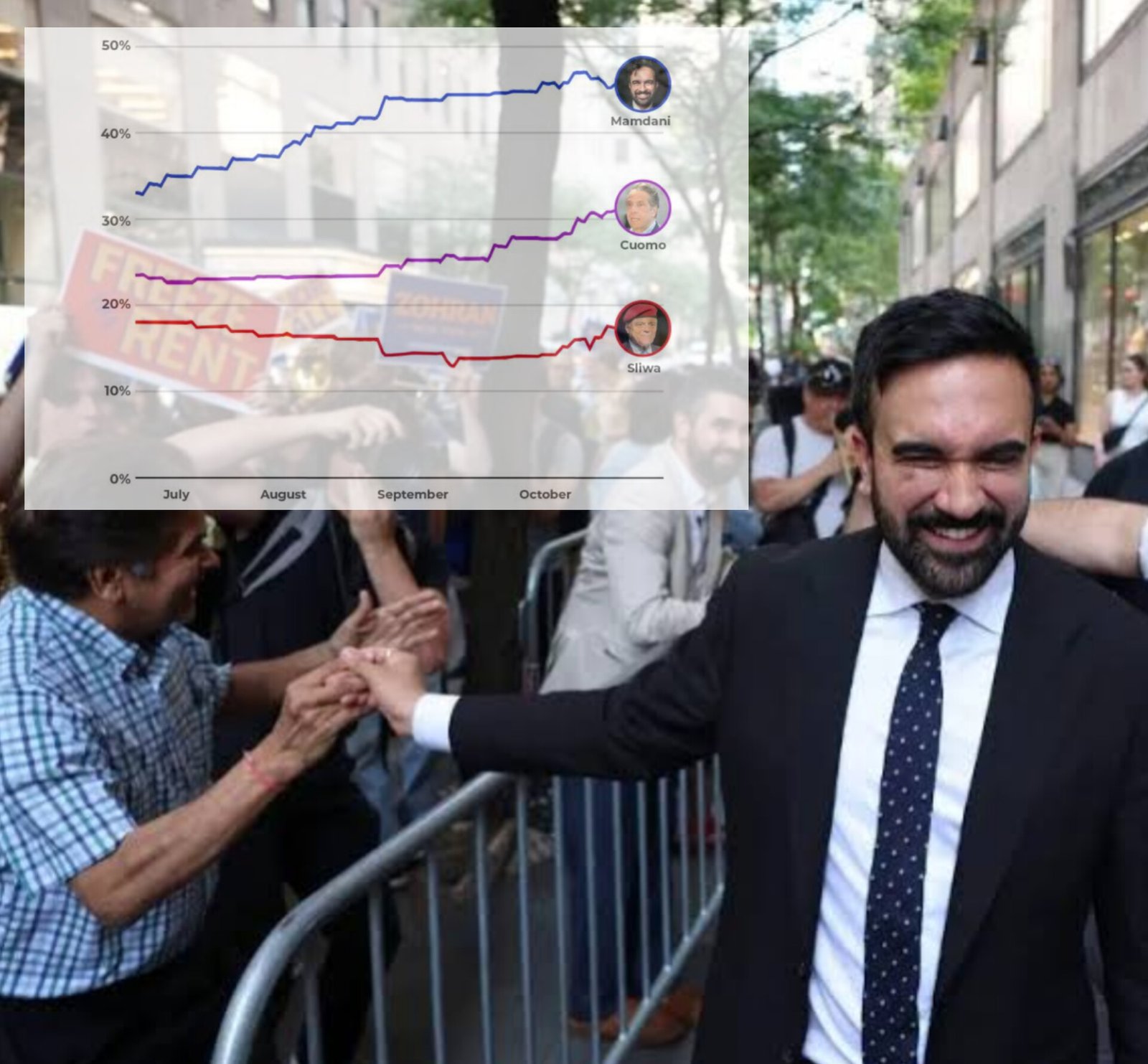 New York City’s mayoral race is in its final stage, with voting set for November 4. A RealClearPolitics poll average shows Democrat Zohran Mamdani leading by 14.7 points over independent Andrew Cuomo. Republican Curtis Sliwa trails far behind. Mamdani, backed by the Democratic Socialists of America, has gained support for his plans on free childcare, rent freeze, and public transport. More than 734,000 people voted early, four times the 2021 figure. Current mayor Eric Adams is not running after earlier controversies. The winner will lead the country’s largest city for the next four years.