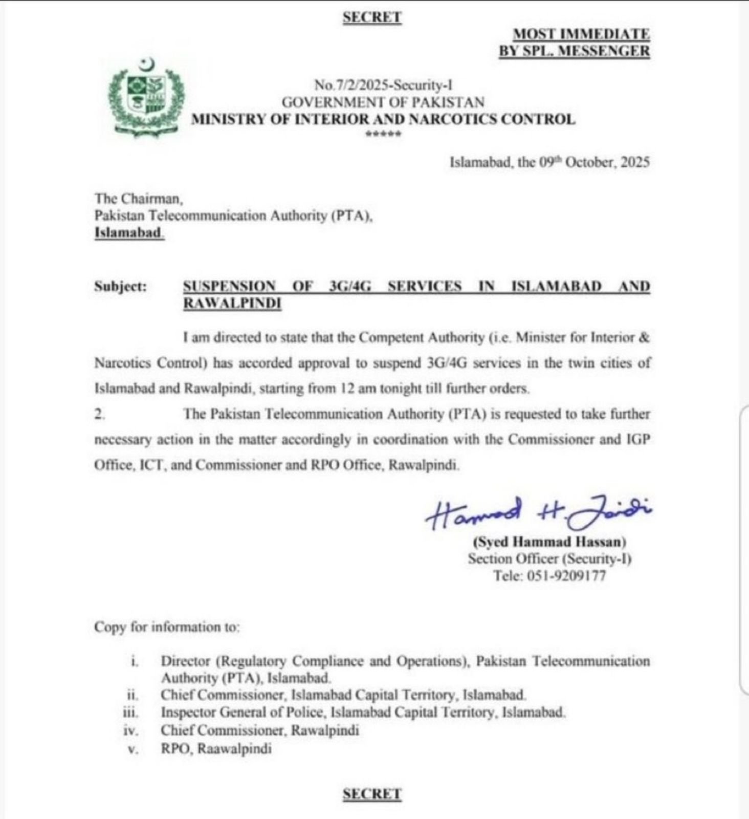Pakistan suspended mobile and internet services in Islamabad and Rawalpindi, sealing capital entry routes ahead of Tehreek-e-Labbaik Pakistan's (TLP) planned 'Labbaik Ya Aqsa Million March' on Friday. Violent clashes in Lahore between police and TLP members left dozens injured after Punjab police raided TLP headquarters attempting to arrest chief Saad Hussain Rizvi. The radical Islamist party planned anti-Israel demonstrations outside Islamabad's US embassy. Interior Minister Mohsin Naqvi approved indefinite service suspension from midnight Friday. Punjab imposed Section 144 banning protests, rallies, and gatherings for ten days. TLP claimed one worker killed, twenty injured. Islamabad's Red Zone completely sealed, with authorities deploying high-alert law enforcement amid heightened security concerns. (PC: X)