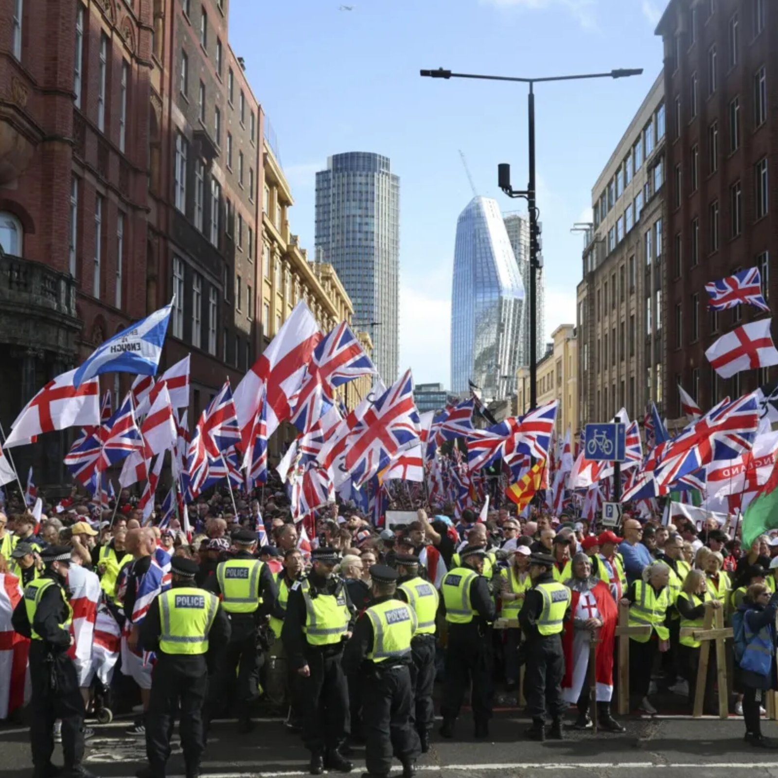 Thousands gathered in central London for the ‘Unite the Kingdom’ rally led by far-right activist Tommy Robinson, while counter protests marched nearby. Police deployed 1,000 officers, including 500 brought from other regions, to maintain order. Demonstrators waved Union Jacks and flags with slogans like “Stop the Boats” and “Send Them Home.” Some also carried anti-transgender messages. A man held a cross marked “RIP Charlie Kirk.” At the same time, about 500 anti-racism activists rallied with placards saying “Oppose Tommy Robinson” and “Refugees Welcome.” Police promised firm action against hate speech and urged demonstrators to remain peaceful. (PC: BBC)