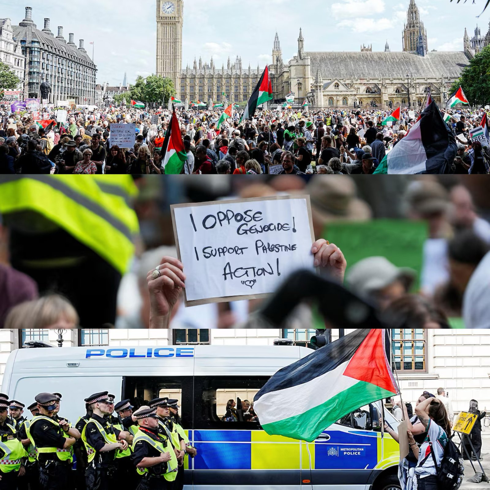British police arrested around 425 people on Saturday at a demonstration supporting Palestine Action, continuing recent mass detentions since the government banned the pro-Palestinian group as a terrorist organization in July. The ban followed members breaking into an RAF base and damaging military planes. Since the July ban, over 700 people have been arrested under anti-terrorism legislation at peaceful protests. Saturday's "Lift the Ban" rally near Parliament saw demonstrators holding signs reading "I oppose genocide. I support Palestine Action." Police faced exceptional abuse including physical attacks and verbal assault. The proscription places Palestine Action alongside al-Qaeda and ISIS, making support punishable by up to 14 years imprisonment. Human rights groups criticize the ban as disproportionate, limiting peaceful protesters' freedom of expression. (PC: Reuters)