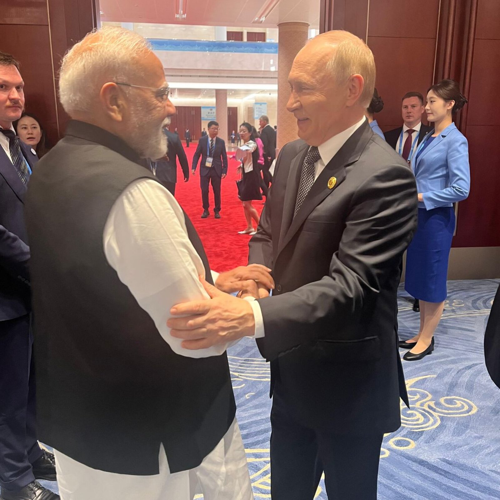At the 25th Shanghai Cooperation Organisation (SCO) summit in Tianjin, Pakistan Prime Minister Shehbaz Sharif was seen looking on as Prime Minister Narendra Modi and Russian President Vladimir Putin walked past him. The two leaders walked together, speaking warmly, while Sharif stood nearby observing. A widely shared video showed the moment on social media. Modi and Putin later exchanged a hug and posed with Chinese President Xi Jinping. Modi also shared a group picture from the summit on X. The SCO summit, hosted by China, brought together leaders from 10 member states and several international organisations.