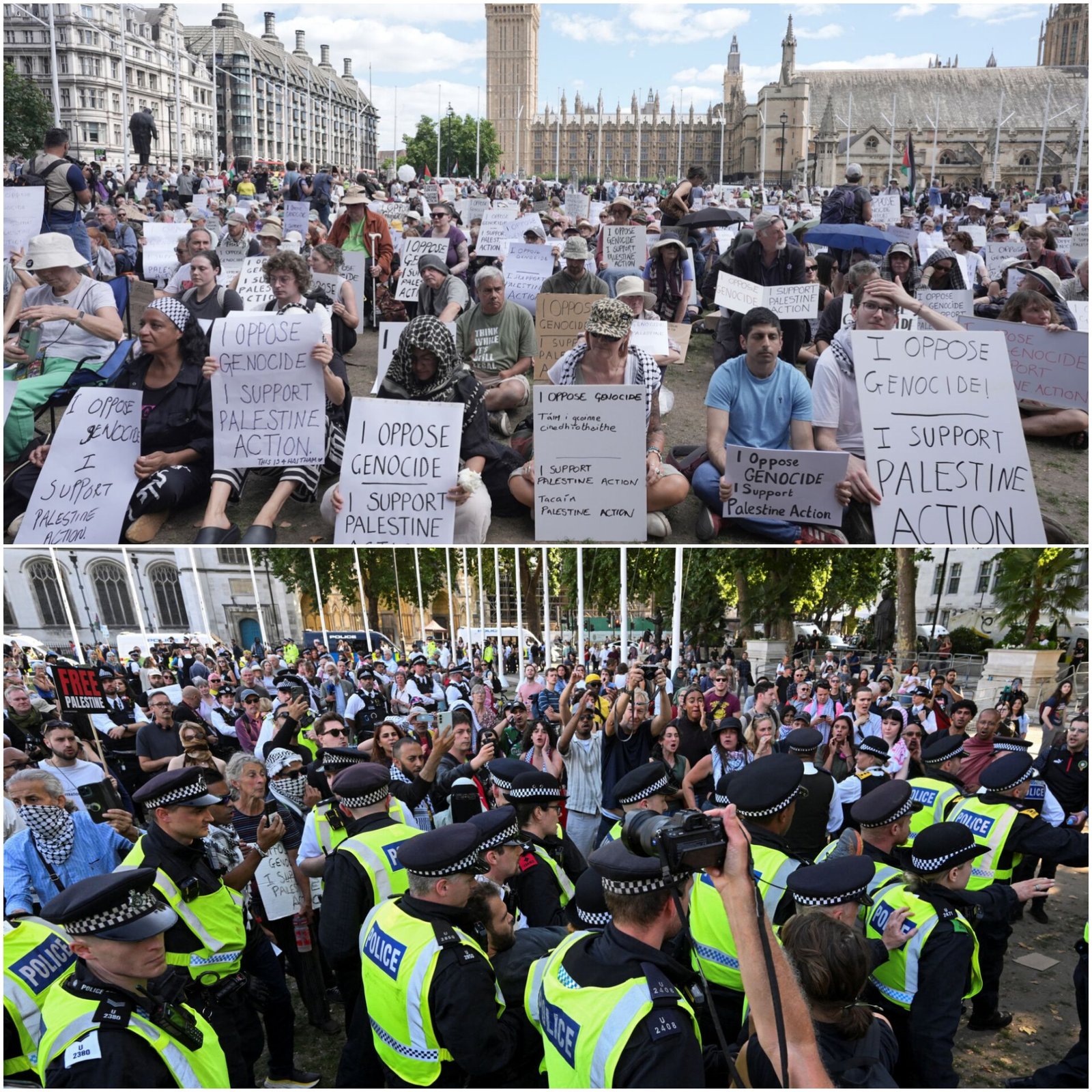 London’s Metropolitan Police arrested 532 people during a protest in Parliament Square supporting banned group Palestine Action, in violation of Section 13 of the UK Terrorism Act 2000. Of those detained, 259 were aged 60 or older, including nearly 100 in their 70s. The average age was 54, with 263 men, 261 women, and eight identifying as non-binary or undisclosed. Most arrests were for displaying placards supporting the proscribed organisation, which carries a penalty of up to 14 years in prison. Amnesty International called the mass arrests “deeply concerning.” All detainees have been released on bail with conditions barring related demonstrations. (PC: Sky News)