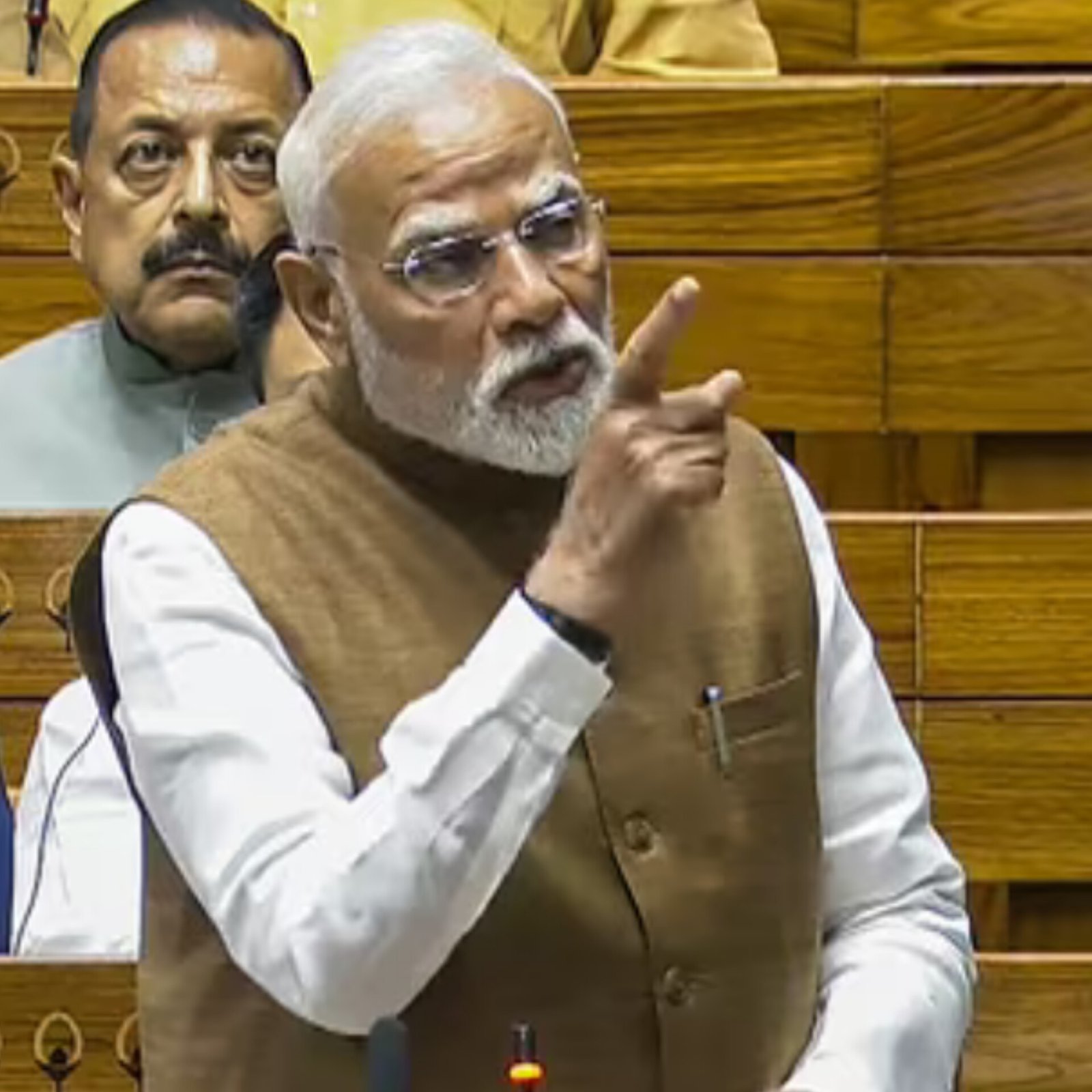Prime Minister Narendra Modi launched a scathing attack on the Opposition in Lok Sabha, accusing them of “chhichorapan” and mocking India’s military success in Operation Sindoor. “Kya maja le rahe the?” he asked, criticizing their behavior during the debate. PM Modi said Pakistan’s airbases are “still in ICU” after India's 22-minute precision strike using Made-in-India weapons. He declared that nuclear blackmail “won’t work” and slammed Congress for failing to back the armed forces. Modi emphasized global support for India and lamented, “Only three countries stood with Pakistan at the UN.” He hailed the operation as both a military and diplomatic victory. (PC: HT)