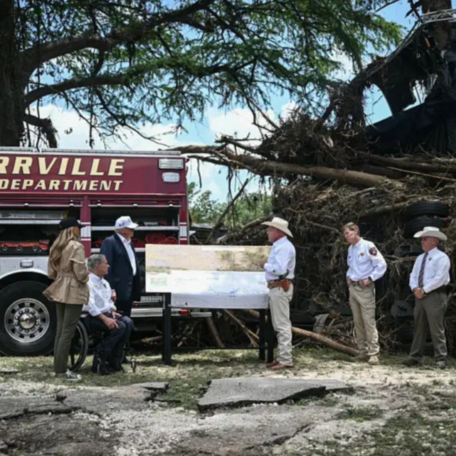 US President Donald Trump and First Lady Melania Trump visited Kerrville, Texas, after catastrophic floods killed 120 people and left 161 missing. Meeting with first responders and grieving families, Trump also stood alongside Texas Governor Greg Abbott. The visit comes as criticism mounts over whether authorities did enough to warn residents ahead of the disaster. Last weekend’s torrential storms dumped months’ worth of rain within hours, submerging homes, roads, and vehicles across central Texas. As river levels surged, thousands were forced to evacuate. The president is expected to face sharp scrutiny over the federal and local response to the tragedy. (PC: BBC)
