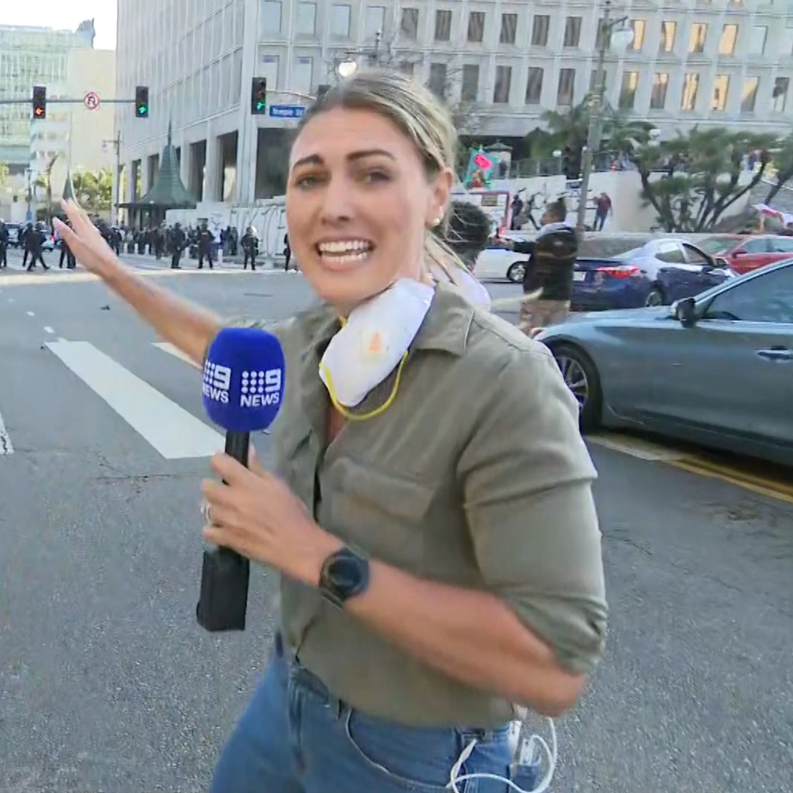 An Australian 9 News correspondent, Lauren Tomasi, was struck by a rubber bullet while covering protests in Los Angeles, thankfully only sustaining minor injuries . In Australia, heavy snowfall stranded vehicles and hikers in the Victorian Alps—rescuers saved 13 drivers and two hikers at Mount Hotham and Kosciuszko National Park . A humpback whale entangled in rope off NSW is being tracked amid rough seas . Media upheaval continues as Network 10’s “The Project” ends June 27 after 16 years . Additionally: Sarah Snook wins a Tony Award; Queensland politicians push for lobbying reforms; and Queensland’s State of Origin captain was dropped. (PC: 9News)