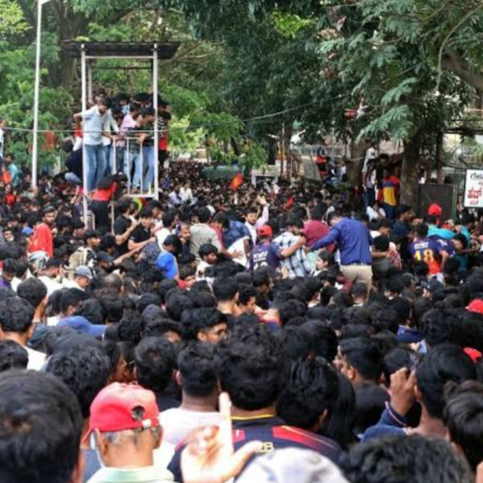Bengaluru descended into stampede-like chaos as thousands of RCB fans mobbed Chinnaswamy Stadium to celebrate the team's maiden IPL title. The Karnataka State Cricket Association's felicitation event turned unruly after fans without entry passes tried scaling walls and fences. Overwhelmed police resorted to lathi-charge to manage the surging crowd. Metro stations were jam-packed, and traffic snarled across central Bengaluru. Minor injuries were reported, with some hospitalised. Authorities now face criticism for poor planning and cancellation of the open-top bus parade. Social media exploded with visuals, drawing comparisons to festival stampedes and political rallies. (PC: X)