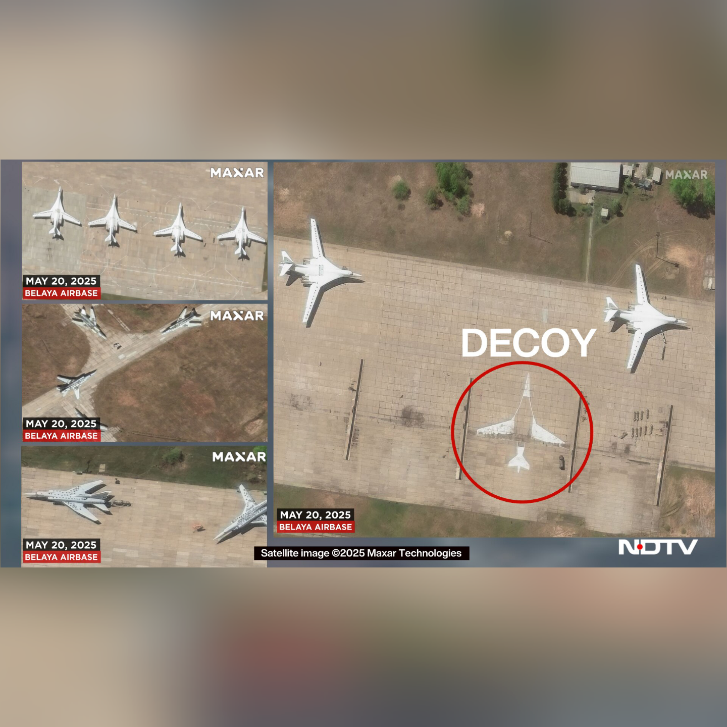 High-resolution satellite images have unveiled how Ukraine's Operation Spider Web successfully targeted five Russian air bases located deep within Russian territory, some as far as 8,000 km from the Ukraine border. Despite Russia's defensive measures—including placing tires on aircraft and painting decoy planes on tarmacs—Ukraine's drones managed to strike strategic bombers, transport aircraft, and airborne warning systems. The targeted bases included Belaya, Olenya, Ivanovo Severny, Dyagilevo, and Ukrainka. This audacious operation underscores the evolving nature of modern warfare and the challenges of defending against drone attacks. (PC: NDTV)