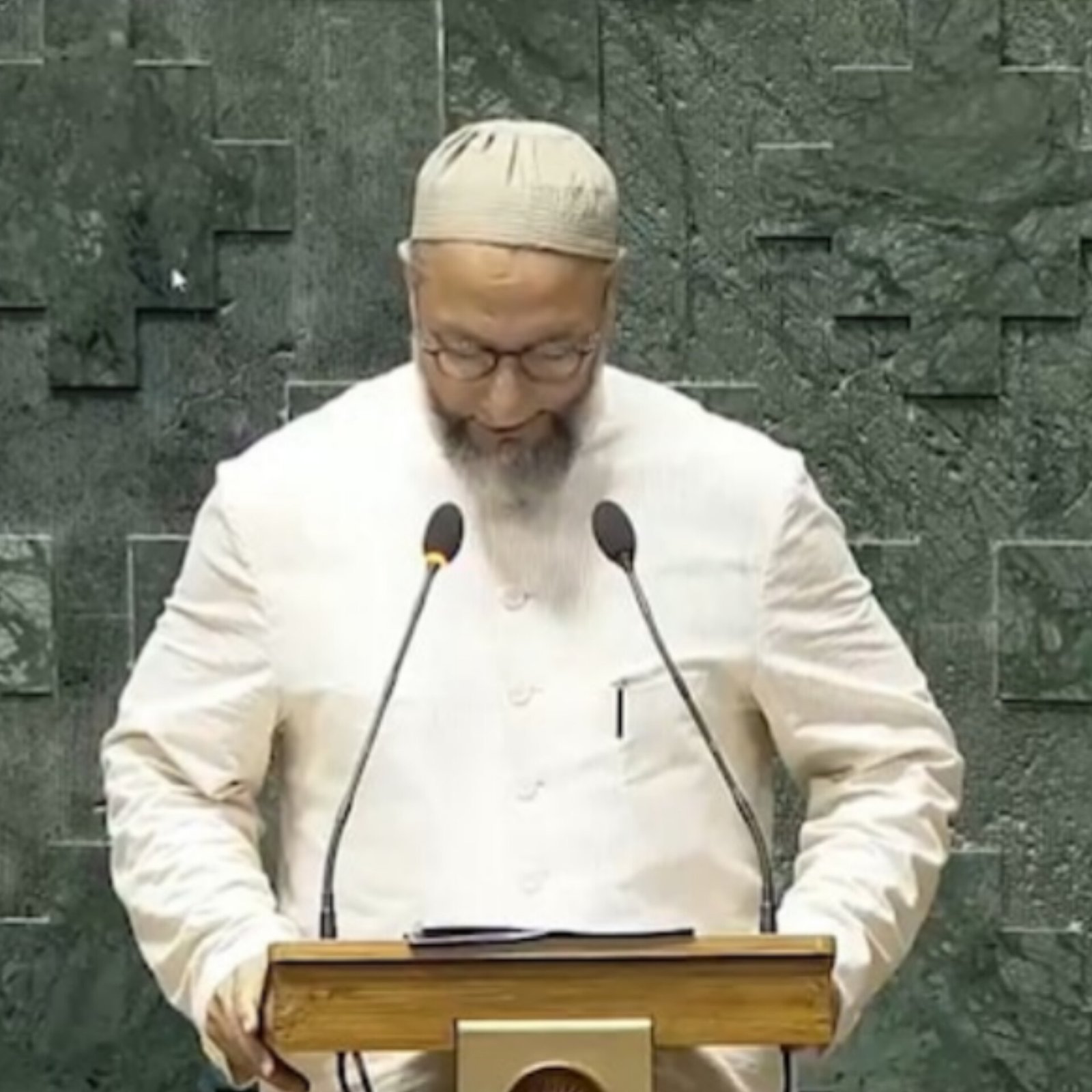 Hyderabad MP Asaduddin Owaisi, leader of AIMIM, concluded his oath as a member of the 18th Lok Sabha with the slogan "Jai Palestine" on Tuesday. This marked his fifth term in office. Owaisi stated on X (formerly Twitter) his commitment to raising issues of India's marginalized. His oath, taken in Urdu, also included "Jai Bhim, Jai Meem, Jai Telangana." The gesture sparked chants of "Jai Shri Ram" from BJP MPs. Union Ministers G Kishan Reddy and Kiren Rijiju criticized the slogan as inappropriate. Owaisi defended his words, asserting no constitutional prohibition against his statement.