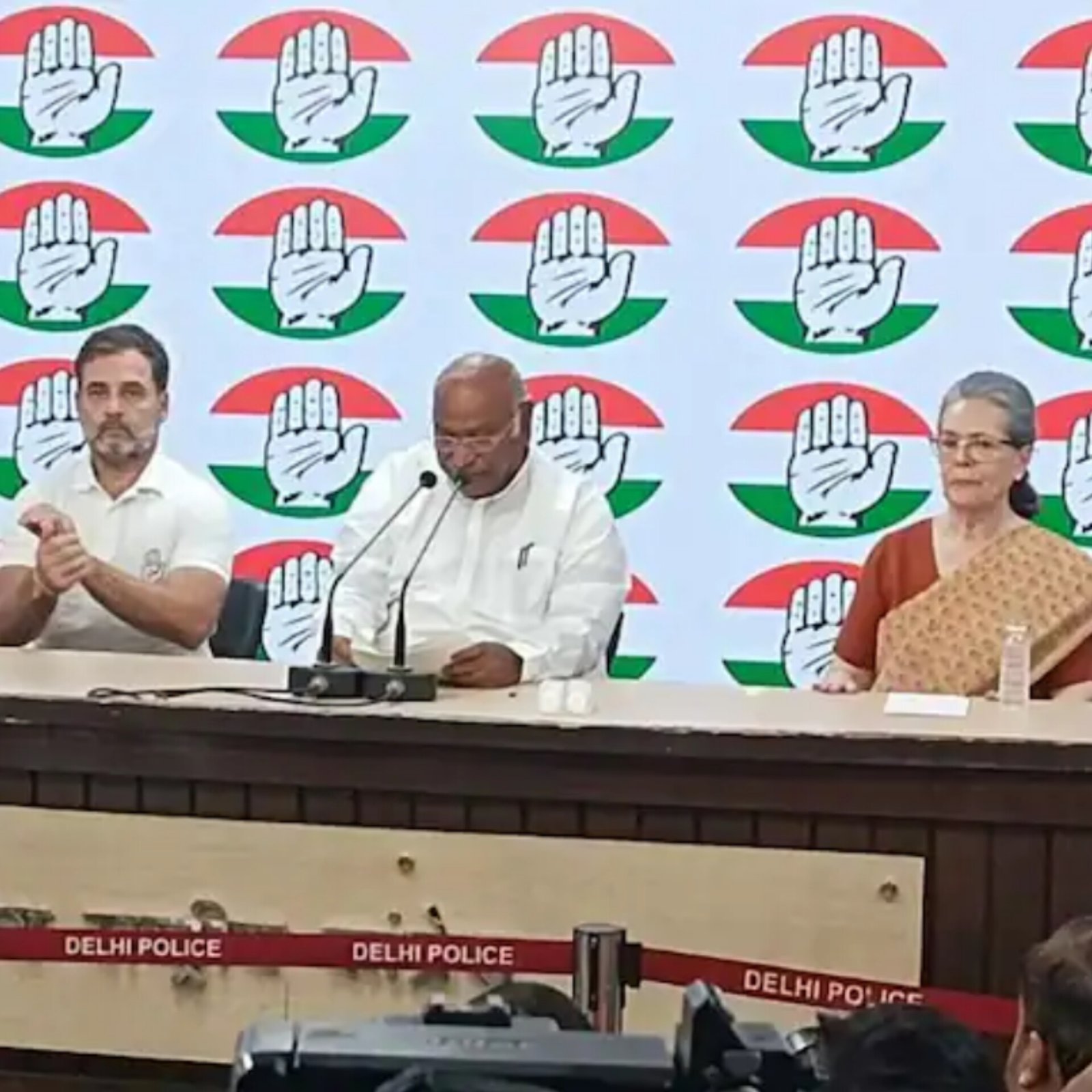 Congress leader Rahul Gandhi expressed gratitude to Wayanad and Raebareli voters and hinted at deciding which seat to retain. Addressing media, he affirmed discussions with alliance partners, indicating a decision on government formation tomorrow. Gandhi emphasized the fight to safeguard the Constitution, thanking party workers and the INDIA bloc for their collective effort. Meanwhile, Mallikarjun Kharge underscored the ongoing battle and the victory of democracy, acknowledging the electorate's rejection of unilateral rule. Additionally, Rahul Gandhi reached out to SP's Akhilesh Yadav, inviting him to Delhi amid unfolding election outcomes.