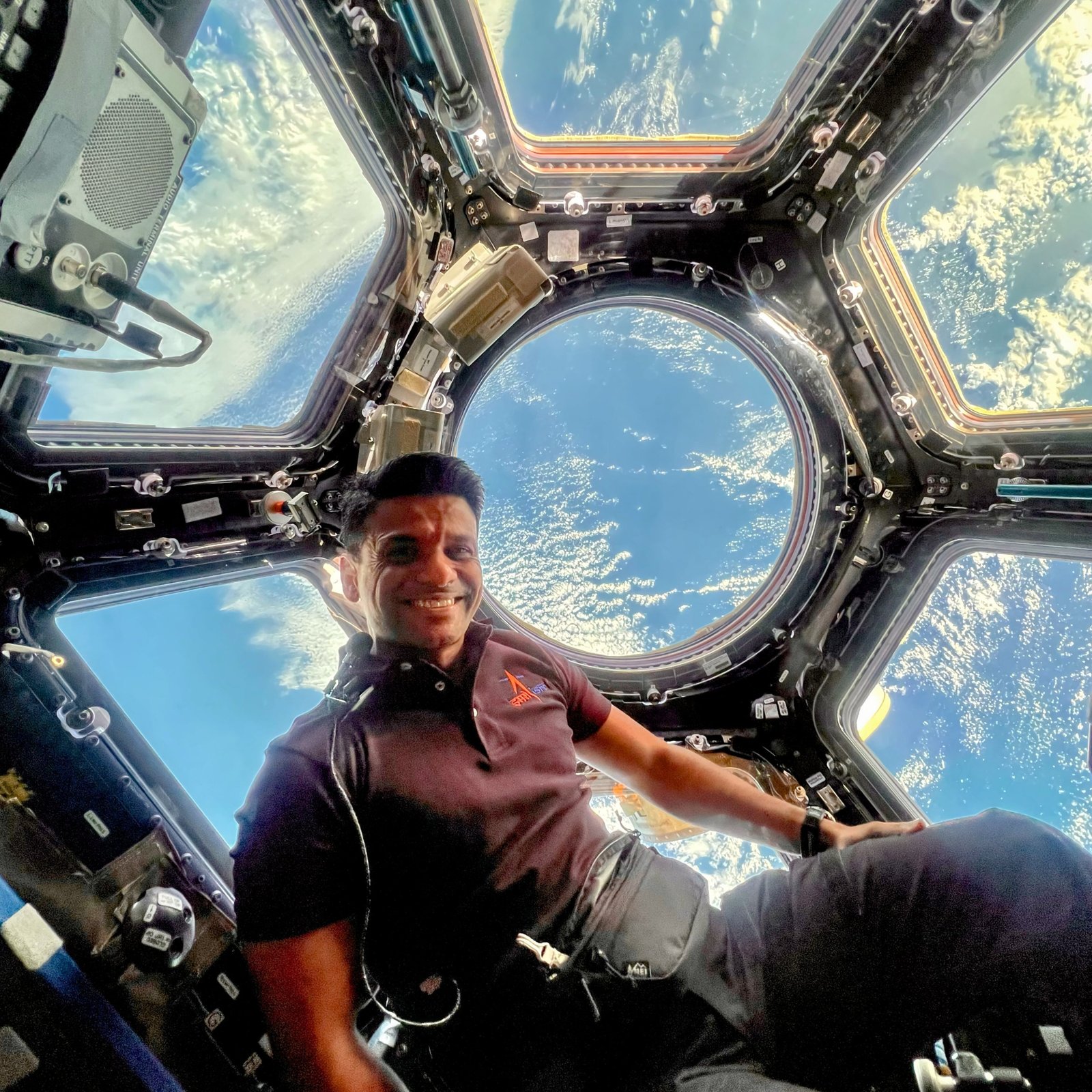 Indian astronaut Group Captain Shubhanshu Shukla has shared his first view from the iconic cupola aboard the International Space Station, saying, “From space, you don’t see any borders.” On a 14-day mission since June 26, Shukla is conducting experiments like Space Micro Algae and the Sprouts project to advance sustainable space farming. In an 18-minute call, he told PM Modi, “Bharat looks bhavya.” Shukla also interacted with 500+ students across India, though ISRO has yet to release videos. His research could help shape deep-space missions and muscle health countermeasures in zero gravity. “The Earth looks united,” he added from orbit. (PC: X)