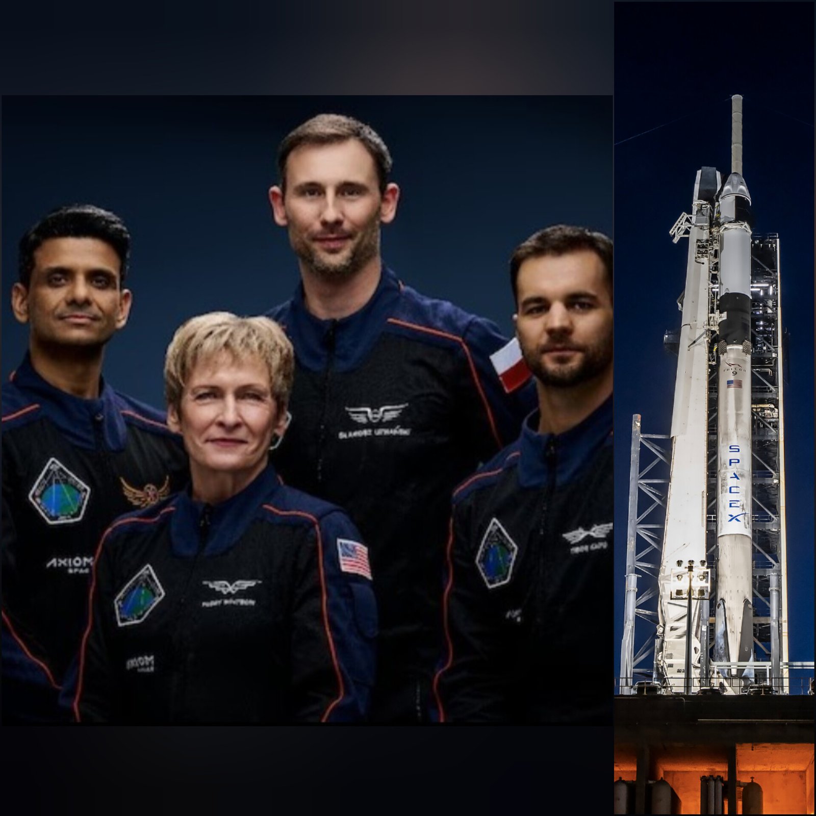 The Axiom-4 mission, carrying Indian Air Force Group Captain Shubanshu Shukla, has been postponed due to a liquid oxygen leak in the SpaceX Falcon-9 rocket. Scheduled for June 11 at 5:30 PM IST, the ISS-bound mission includes astronauts from India, Poland, Hungary, and the US. SpaceX announced repairs are underway and a new date will be shared pending range availability. This historic flight marks India’s return to human spaceflight after 41 years, and the first-ever ISS mission for India, Poland, and Hungary. Shukla will be the first Indian on the ISS, following Rakesh Sharma’s 1984 space mission. (PC: X)