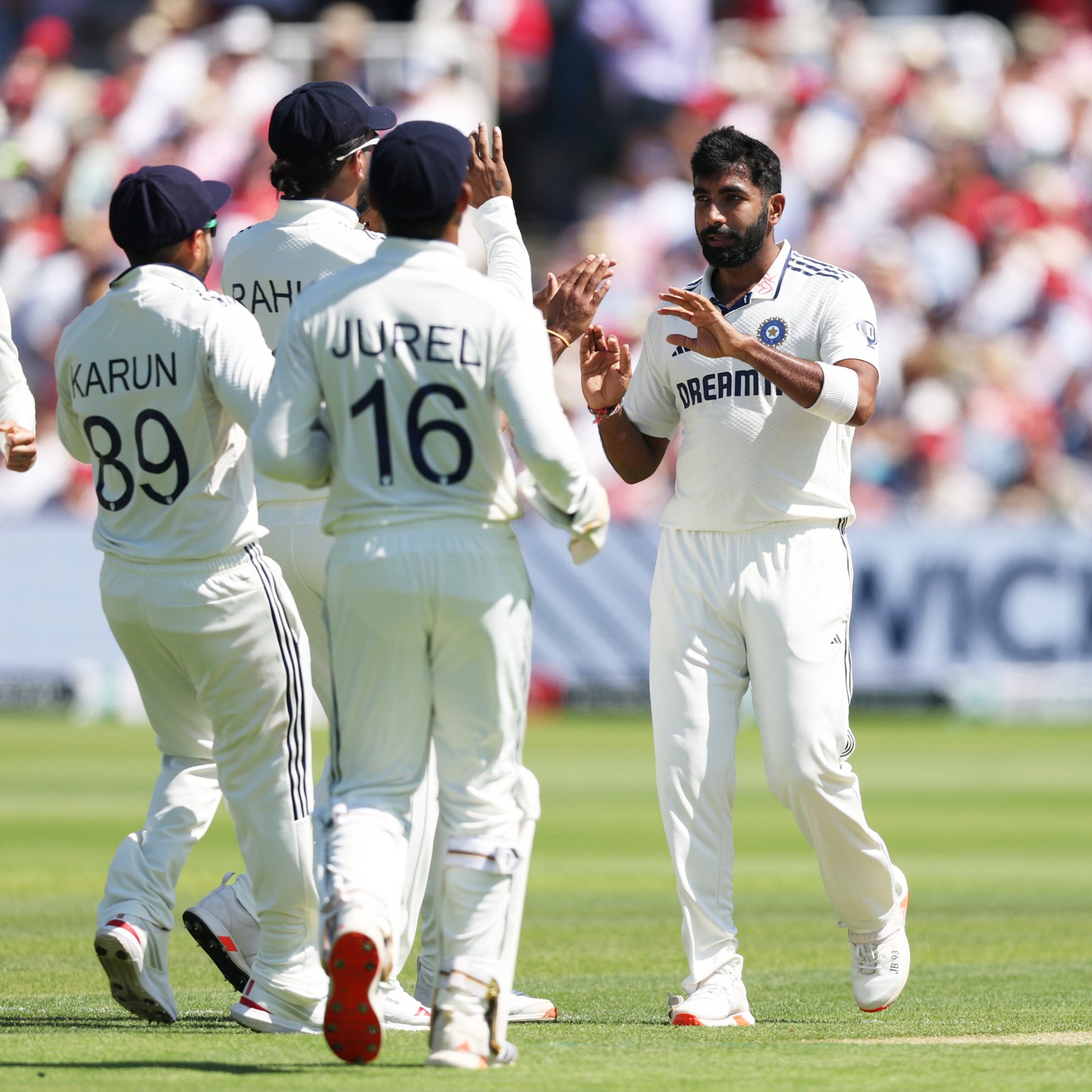 India pacer Jasprit Bumrah earned a historic feat at Lord's by claiming his maiden five-wicket haul at the iconic venue, etching his name on the Honours Board—something Sachin Tendulkar never achieved in his legendary 24-year career. Bumrah took 4 wickets on Day 2 after just one on Day 1, helping India bowl England out for 387. Joe Root led England’s innings with a century (104), supported by Jamie Smith’s 51. However, India faced an early setback as opener Yashasvi Jaiswal was dismissed by Jofra Archer. India currently 1 wicket down as play continues on Day 2. (PC: BCCI)