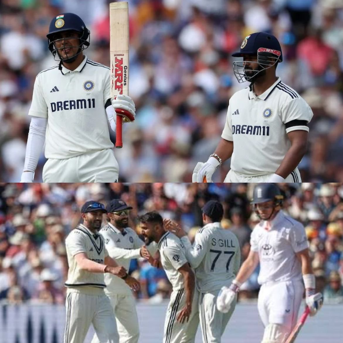 India dominated Day 4 at Edgbaston, declaring their second innings at 427/6 to set England a formidable 608-run target. Shubman Gill was the star, crafting a historic match with 269 and 161, becoming the first player to record a double‑ton and 150+ in the same Test, accumulating 430 runs. Rishabh Pant (65) and Ravindra Jadeja (69*) offered crucial support. England struggled early, slipping to 72/3 by stumps as Akash Deep and Mohammed Siraj exploited reverse swing. India now lead the series 1‑1, and Day 5 promises a gripping finish as England face a near‑impossible chase. (PC: Reuters)