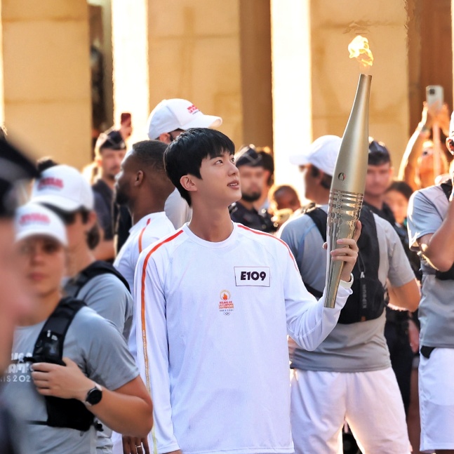 BTS member Jin became the first torchbearer for the 2024 Paris Olympics, carrying the Olympic flame through Paris on July 14, Bastille Day, the French National Day. He was seen holding the torch at the Louvre Museum, representing South Korea. Jin departed Seoul on July 11 for the event. The flame, lit in Olympia, Greece on April 16, will arrive in Paris on July 26 for the Olympics' opening ceremony. The torch relay will cover 400 cities in France and some overseas regions, involving around 10,000 torchbearers, including Jin. This marks a significant appearance for a K-pop star in the Olympic torch relay.