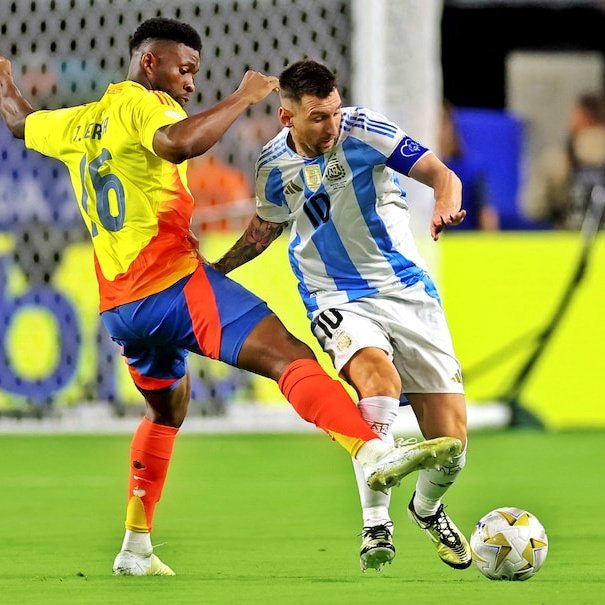 The Copa America final between Argentina and Colombia has reached half-time with a scoreless tie. Argentina controlled possession, but Colombia created better scoring opportunities. Lionel Messi, potentially playing his last international match, aims to secure a third consecutive major title for Argentina. Messi recently scored his first goal in the tournament, ending a drought. James Rodriguez leads the tournament in chances created, while Angel Di Maria will retire from international football after this match. The second half is set to begin, with both teams competing for the Copa America championship.