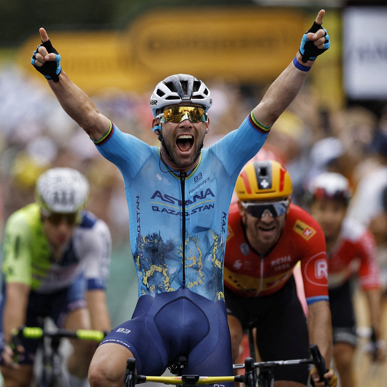 British cyclist Mark Cavendish has broken the record for Tour de France stage wins, securing his 35th victory in Saint-Vulbas, France. The 39-year-old Astana-Qazaqstan rider surpassed Belgian legend Eddy Merckx's record of 34 wins. Cavendish expressed disbelief and gratitude to his team, saying they "went all in" to achieve this milestone. This triumph comes after a disappointing crash and collar bone break forced him out of last year's Tour, which he had considered his last. Cavendish's teammate Cees Bol praised his performance, saying "he f****** nailed it." This historic win marks a remarkable comeback for the British cyclist.