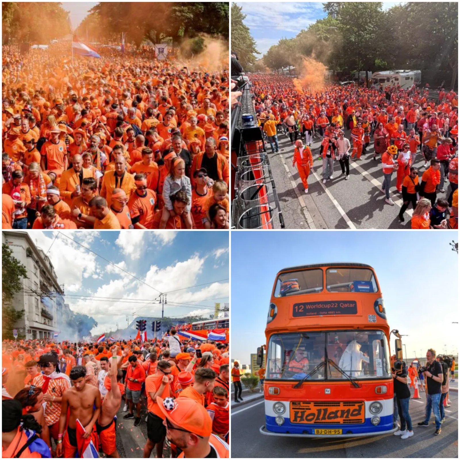 Thousands of Dutch fans paraded through Hamburg Germany, ahead of their Euro 2024 match against Poland. Dressed in bright orange and creative costumes, including lions and cheese hats, they filled the streets with music and cheer. An iconic orange double-decker bus, leading its 50th parade, joined the festivities. Fans danced to Dutch DJ Armin van Buuren before marching to Volksparkstadion. Netherlands captain Virgil van Dijk praised the fans' support. Despite an earlier police incident in central Hamburg, the parade went smoothly, showcasing the Dutch fans' vibrant spirit and unity.
