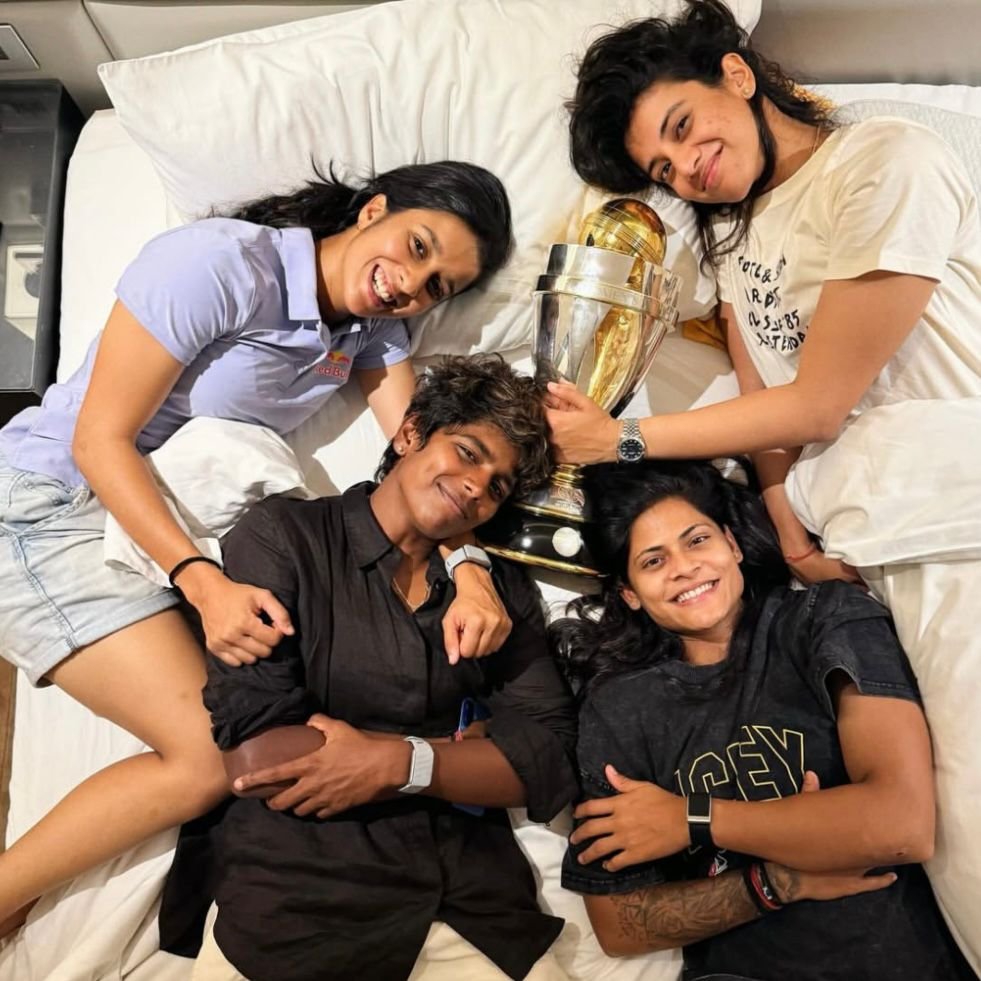 India clinched their maiden Women's World Cup title, with Jemimah Rodrigues sharing celebratory images of teammates sleeping alongside the trophy. The historic victory saw Rodrigues, Smriti Mandhana, Arundhati Reddy, and Radha Yadav celebrating together. Rodrigues' match-winning unbeaten 127 against Australia in the semi-finals powered India to a record-breaking 339-run chase, the highest successful chase in World Cup knockout history. A crucial 150-run partnership between Rodrigues and Harmanpreet Kaur (89) rescued India from 59/2. India subsequently defeated South Africa in Mumbai's final, ending their 52-year wait after previous runner-up finishes in 2005 and 2017. This breakthrough triumph is expected to significantly boost women's cricket participation across cricket-obsessed India. (PC: Instagram/@Jemimah Rodrigues)