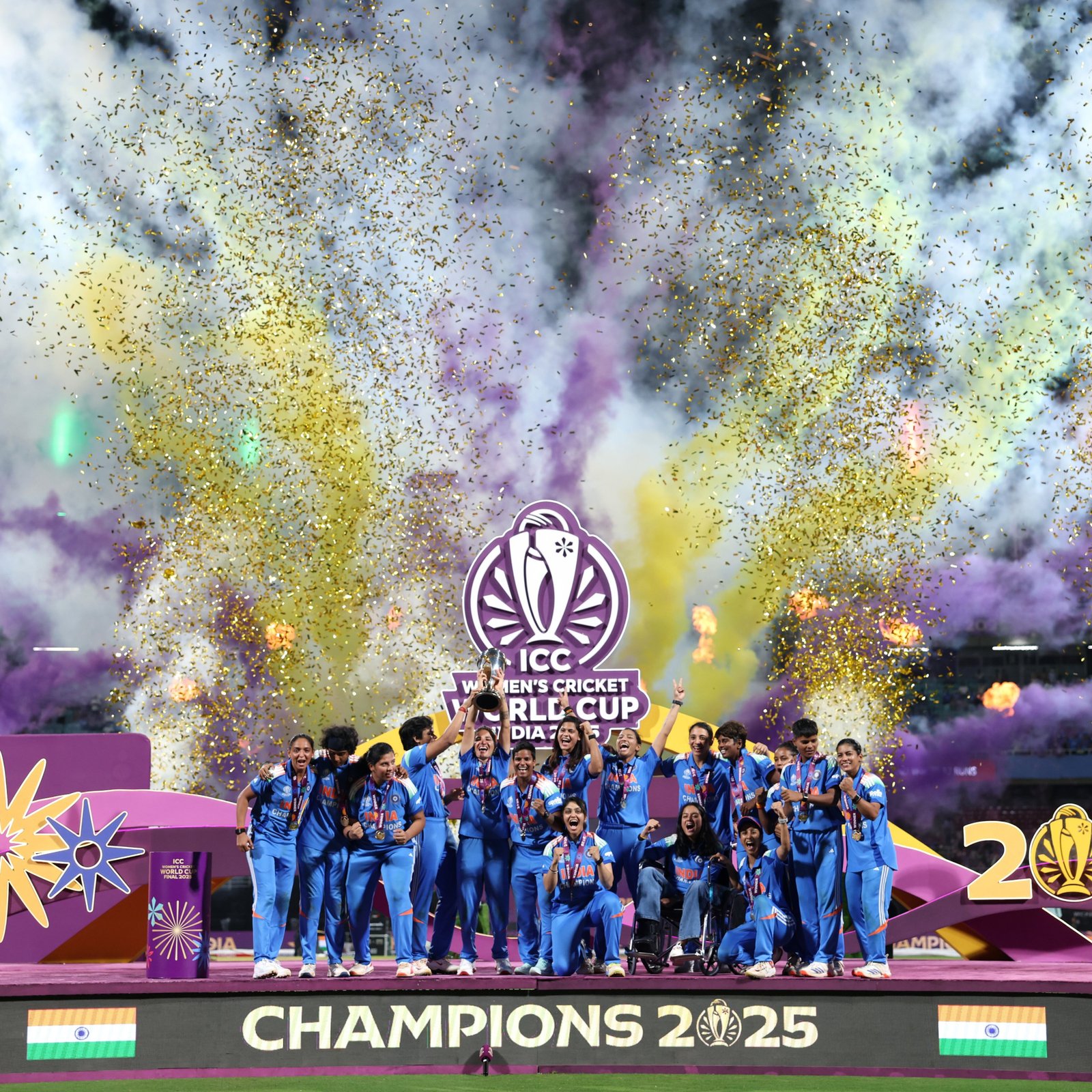 India ended two decades of heartbreak by winning their first-ever ICC Women’s World Cup, defeating South Africa by 52 runs in Navi Mumbai. Shafali Verma scored 87 and took two wickets, while Deepti Sharma starred with a match-winning five-wicket haul. India posted 298 and bowled out South Africa for 246 in front of a packed Dr DY Patil Stadium. Harmanpreet Kaur’s team finally ended India’s long wait for an ICC title, sparking emotional celebrations. The win marked a proud moment for Indian cricket and inspired millions across the country, completing a story of patience, belief, and triumph. (PC: ICC)