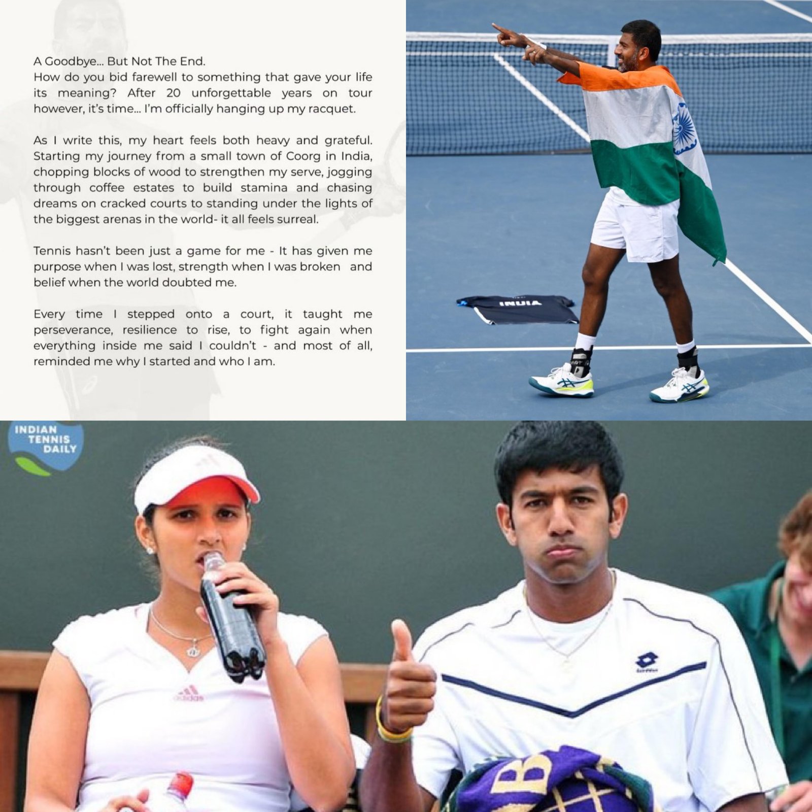 Indian tennis legend Rohan Bopanna announced his retirement on Saturday, ending a celebrated 20-year professional career. The 45-year-old's final appearance was at the Paris Masters 1000 with Alexander Bublik, losing 5-7, 6-2, 10-8 to John Peers and James Tracy in Round of 32. The two-time Grand Slam champion won the 2017 French Open mixed doubles with Gabriela Dabrowski and achieved his crowning glory in 2024, capturing the Australian Open men's doubles title and reaching World No. 1 at age 43. Bopanna reached five Grand Slam finals throughout his career. In an emotional social media post, he thanked his family, coaches, and fans, vowing to help young Indian tennis dreamers pursue their ambitions. (PC: X)