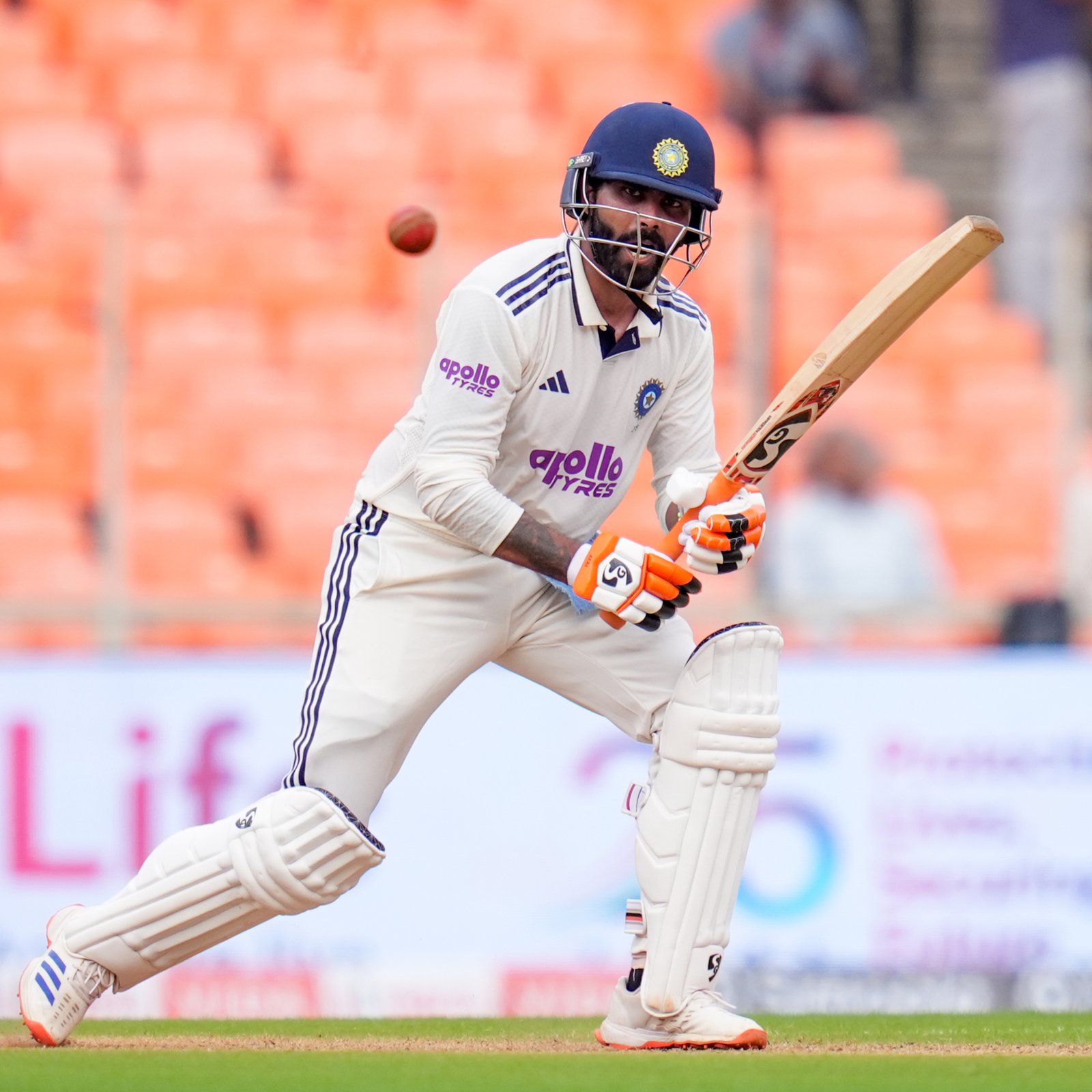 Ravindra Jadeja joined an elite list of Indian cricketers after scoring his sixth Test century against West Indies in Ahmedabad. With this, he became only the third Indian after Kapil Dev and Ravichandran Ashwin to record at least six Test centuries and six five-wicket hauls. Jadeja scored 104 runs from 176 balls, hitting six fours and five sixes. He also shared a 206-run partnership with Dhruv Jurel, who scored his maiden century. India ended the second day at 448 for five, leading West Indies by 286 runs. Jadeja also overtook MS Dhoni’s record of most sixes in Tests for India. (PC: BCCI)