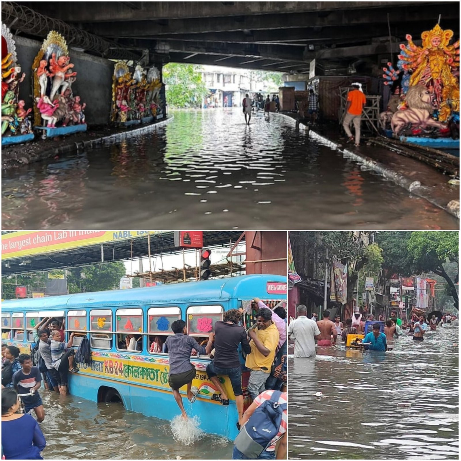 Kolkata faced its heaviest rain in 37 years, leaving at least 10 people dead and large parts of the city flooded. The city recorded 251.4 mm of rain in less than 24 hours, the highest since 1988. Streets, train tracks, and metro lines were waterlogged, disrupting transport, schools, and offices. Over 30 flights were cancelled and many delayed. The India Meteorological Department (IMD) warned of more rain due to a low-pressure system. Chief Minister Mamata Banerjee blamed the Damodar Valley Corporation and poor dredging for worsening floods. Many Durga Puja pandals were damaged as workers struggled to pump water out. (PC: X)