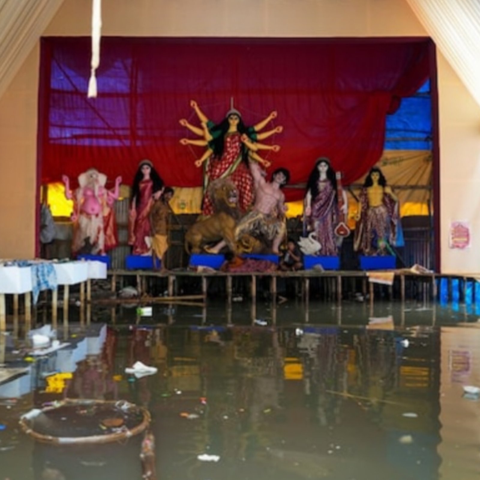 Kolkata is still struggling after record rainfall killed 11 people and left the city flooded before Durga Puja. Most deaths were caused by electrocution on waterlogged streets. Authorities are pumping out water, but high tides in the Hooghly river slowed drainage efforts. Several Durga Puja pandals remain damaged, raising concerns ahead of the festival. Chief minister Mamata Banerjee announced ₹5 lakh compensation for victims’ families and opened a control room. Power supply has been partially restored in affected areas. The IMD warned of more rain within 24 hours, leaving residents anxious as transport and daily life remain disrupted. (PC: HT)