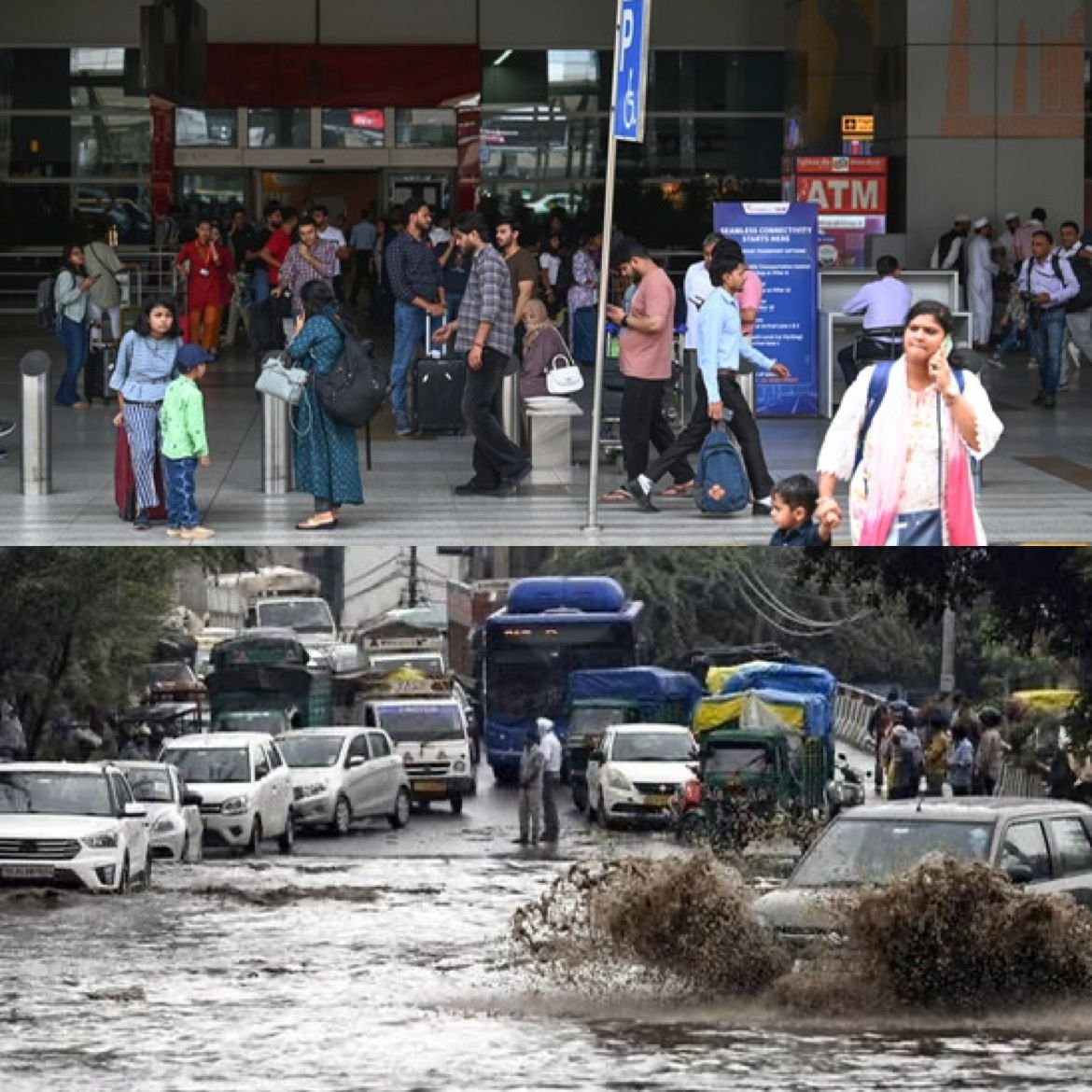 On May 25, 2025, a powerful thunderstorm struck Delhi-NCR, bringing heavy rainfall, gusty winds up to 100 km/h, and significant disruption. The India Meteorological Department had issued a red alert, forecasting severe weather conditions. The storm led to extensive waterlogging in areas like Minto Road, Delhi Cantt, and near the airport, with visuals showing submerged vehicles. Flight operations at Indira Gandhi International Airport were severely affected, with over 200 flights delayed and average delays of 45 minutes. Delhi recorded 81.2 mm of rain during the storm, making May 2025 the wettest on record with a total of 186.2 mm. (PC: PTI)
